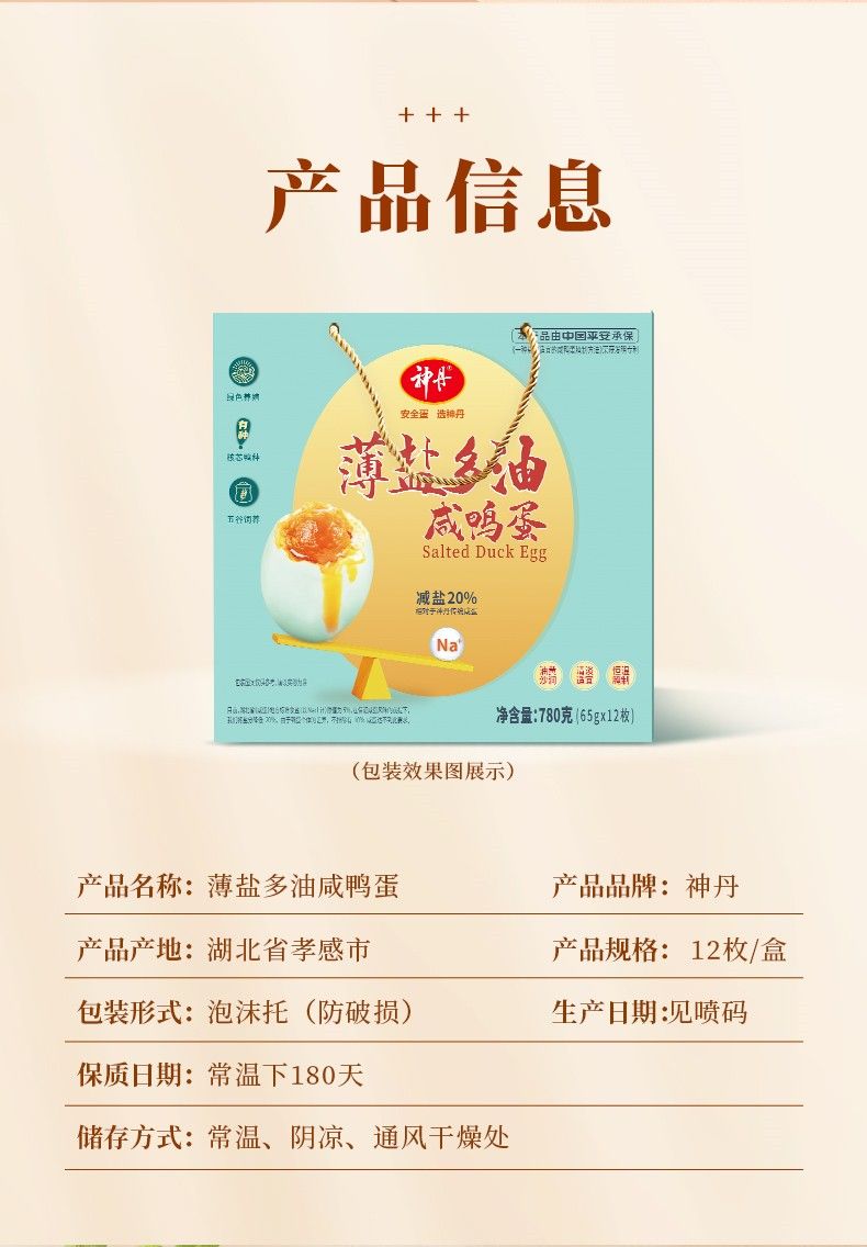 商品名称:神丹 薄盐多油咸蛋12枚装