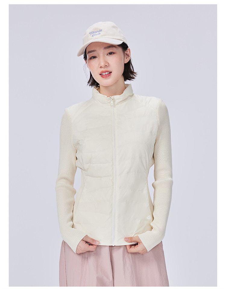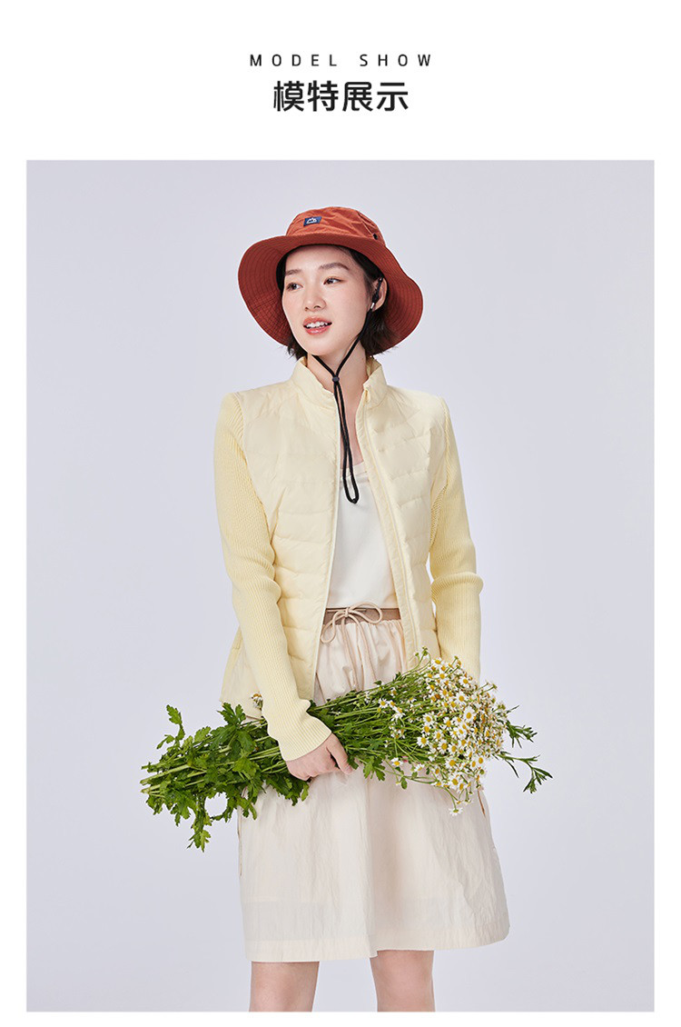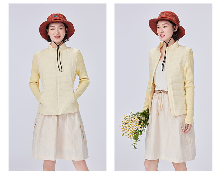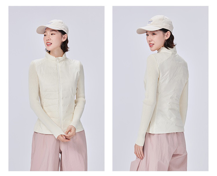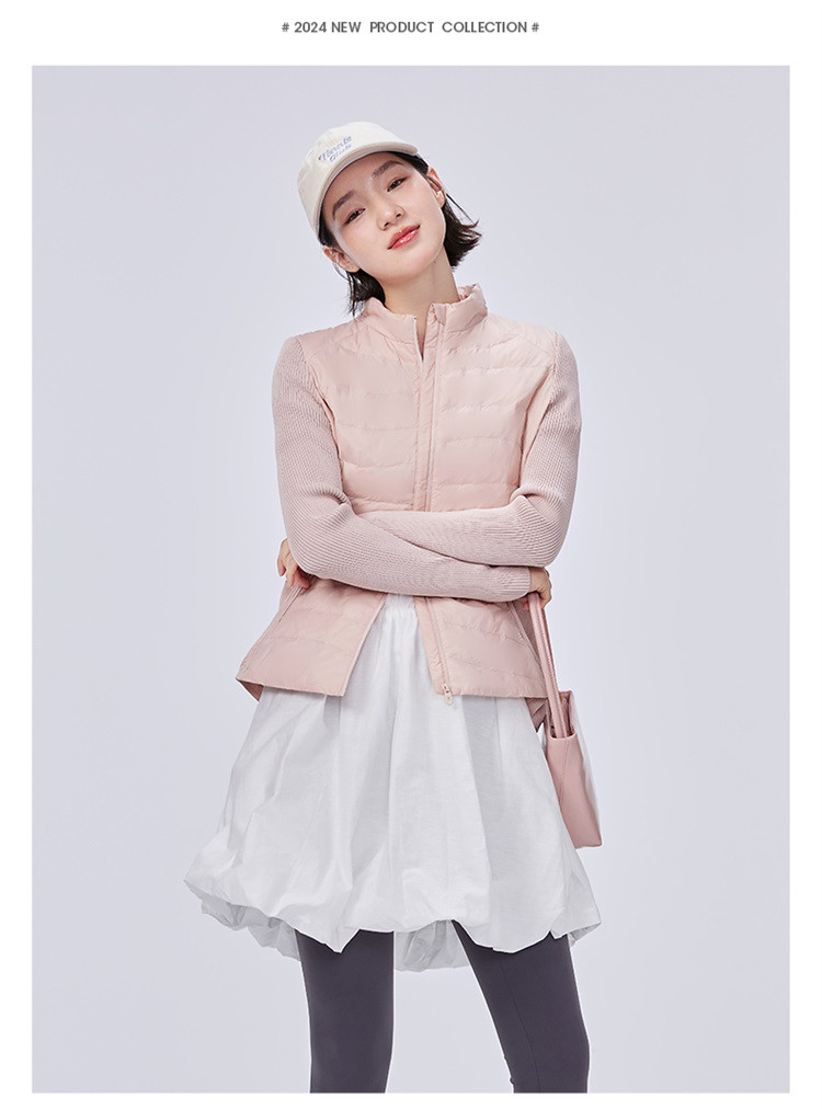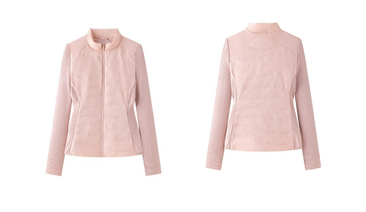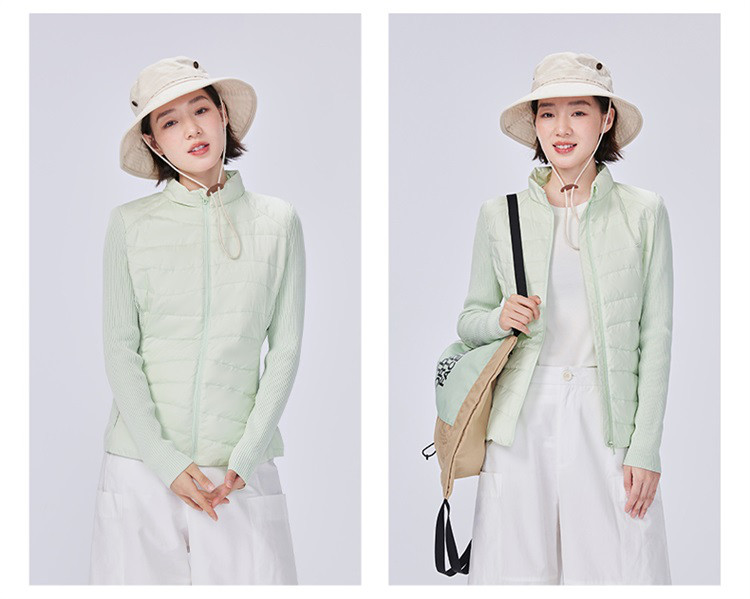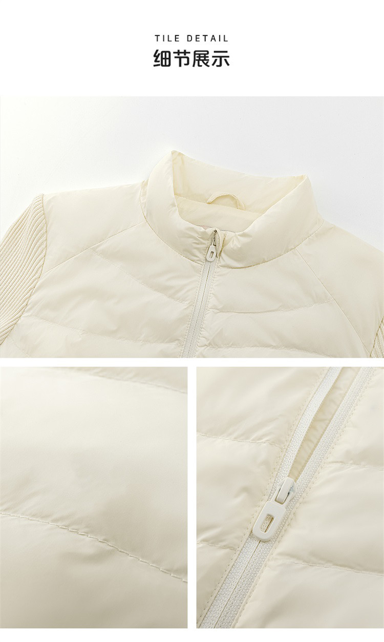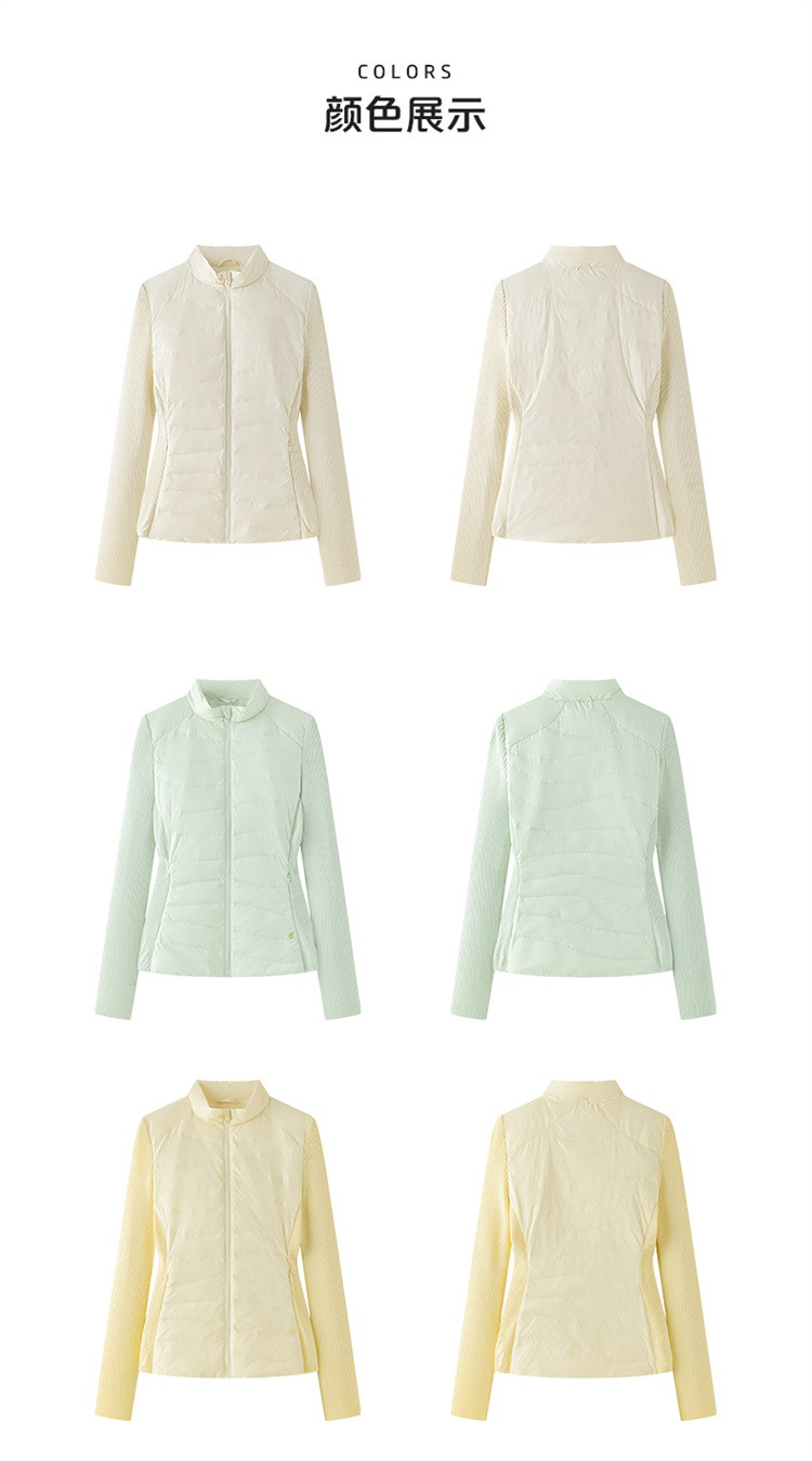 商品名称:轻户外羽绒服女薄款24年春季款拼接针织袖立领鹅绒服女短款 659478