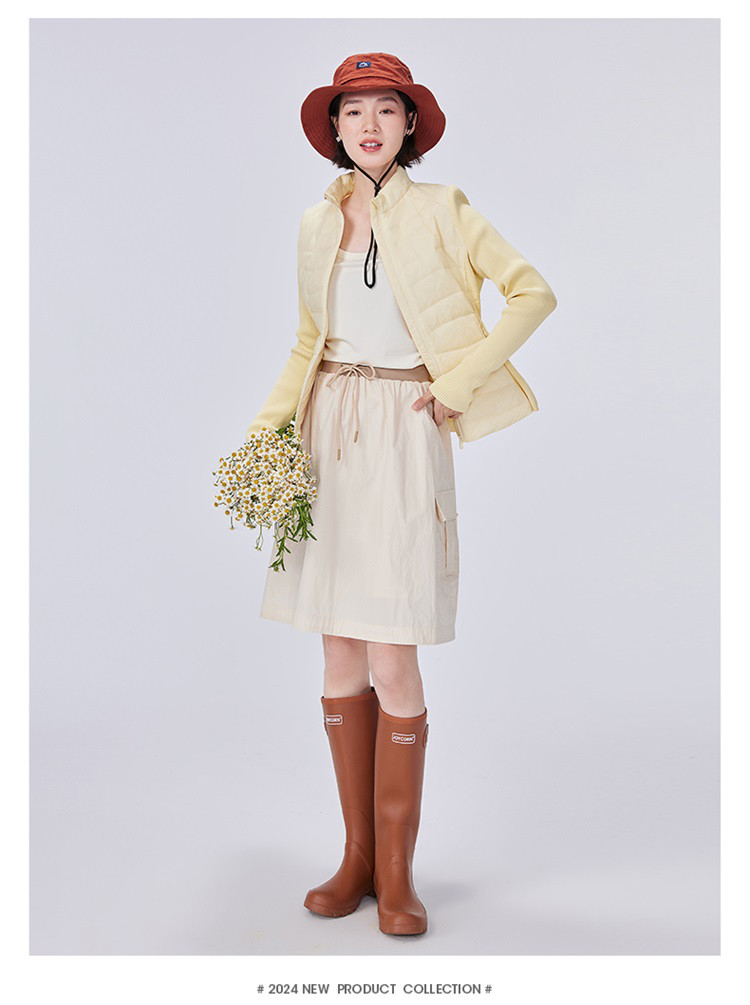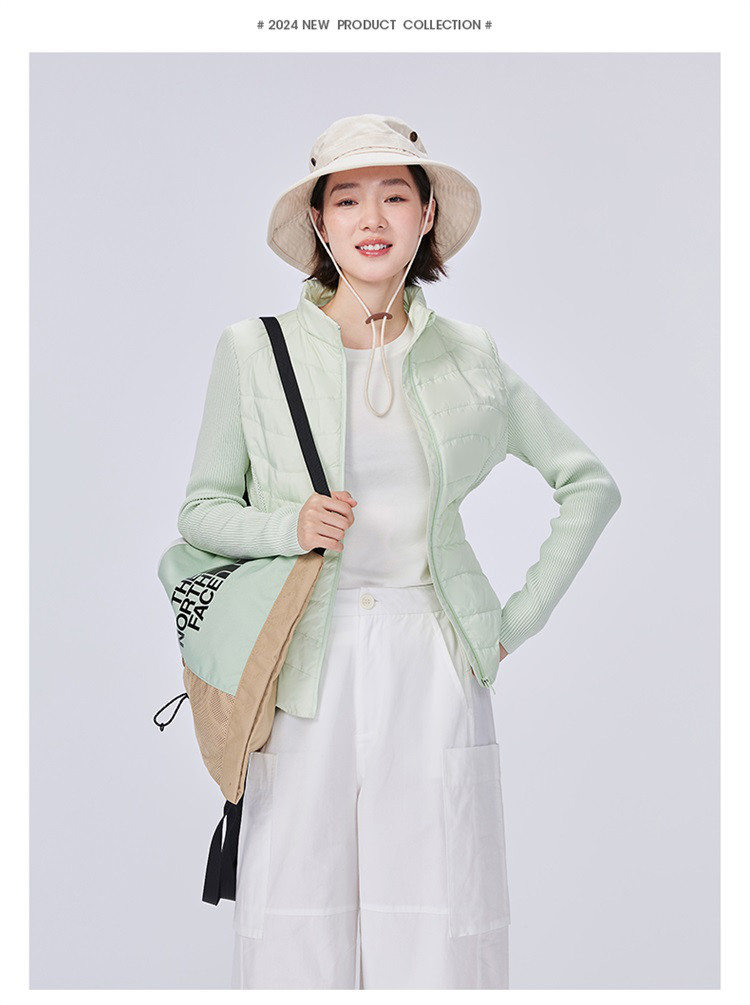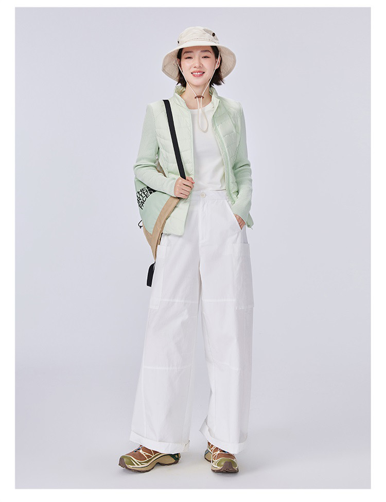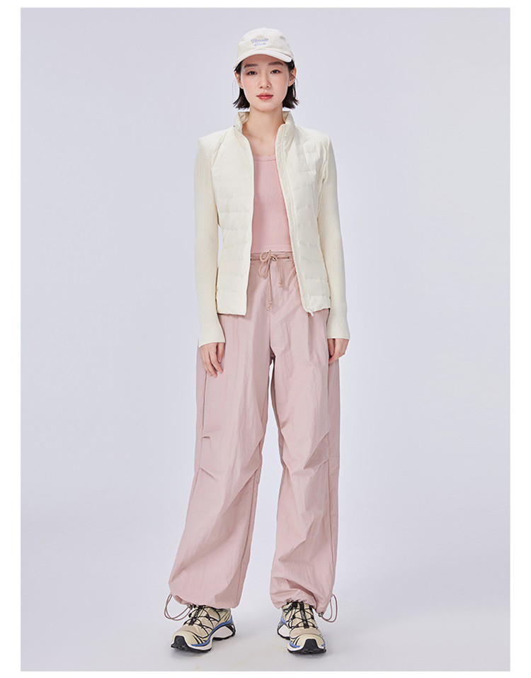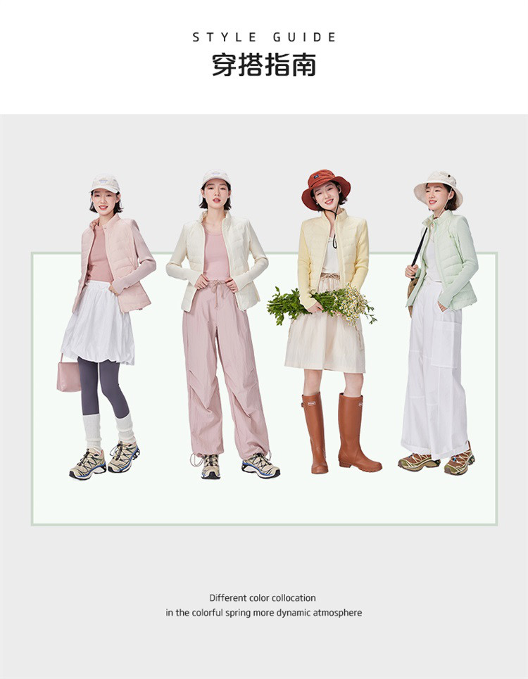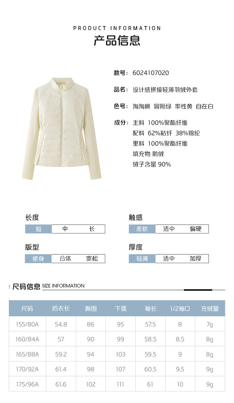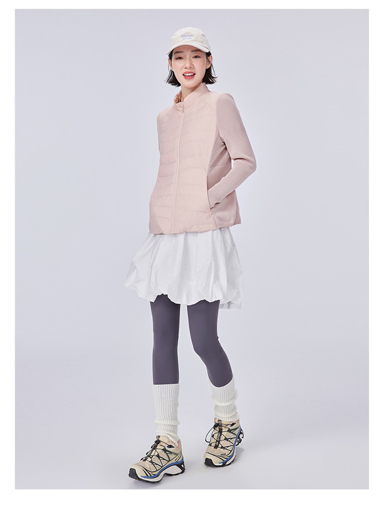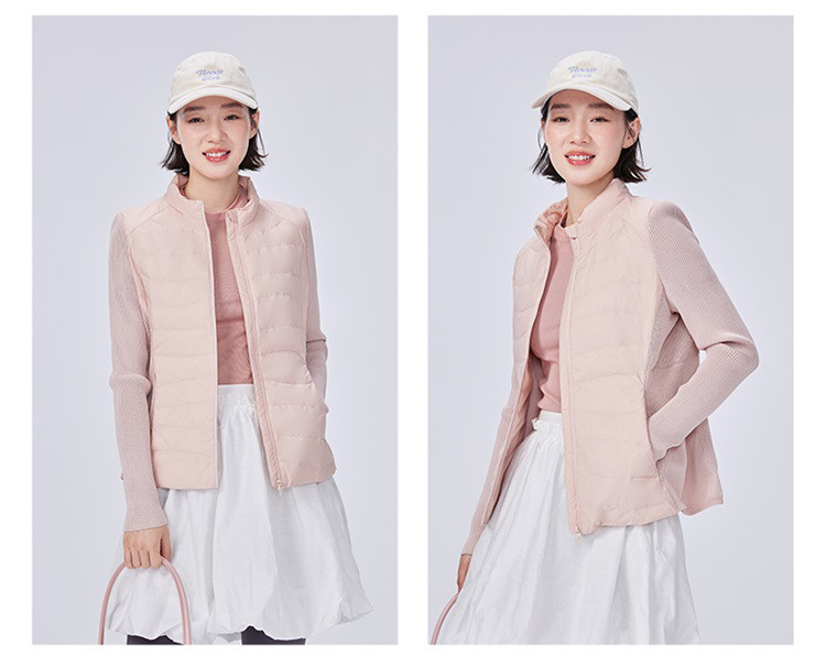 商品名称:轻户外羽绒服女薄款24年春季款拼接针织袖立领鹅绒服女短款 659478