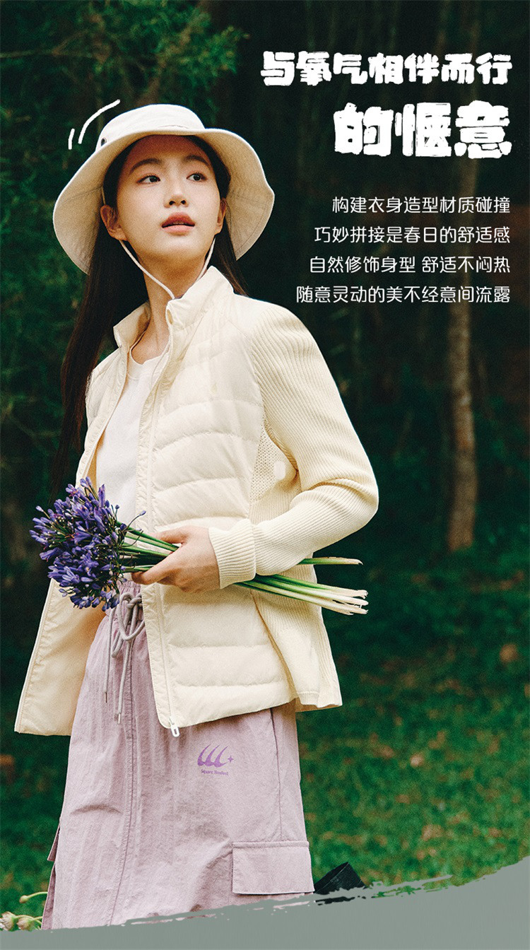轻户外羽绒服女薄款24年春季款拼接针织袖立领鹅绒服女短款 659478