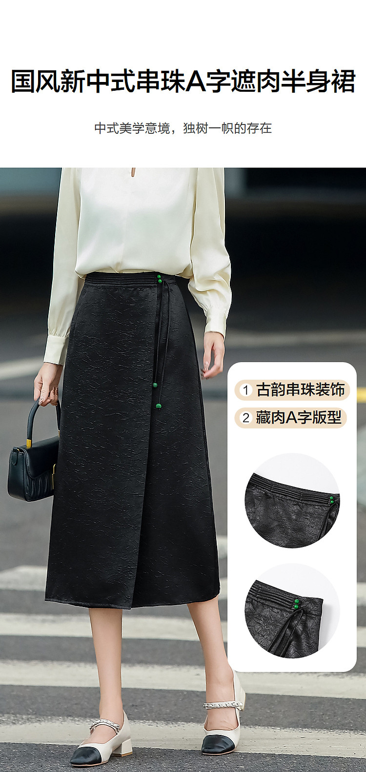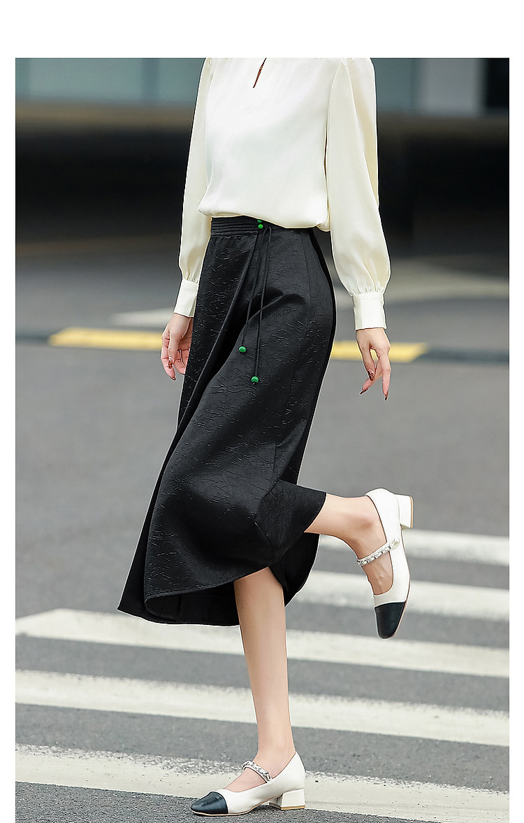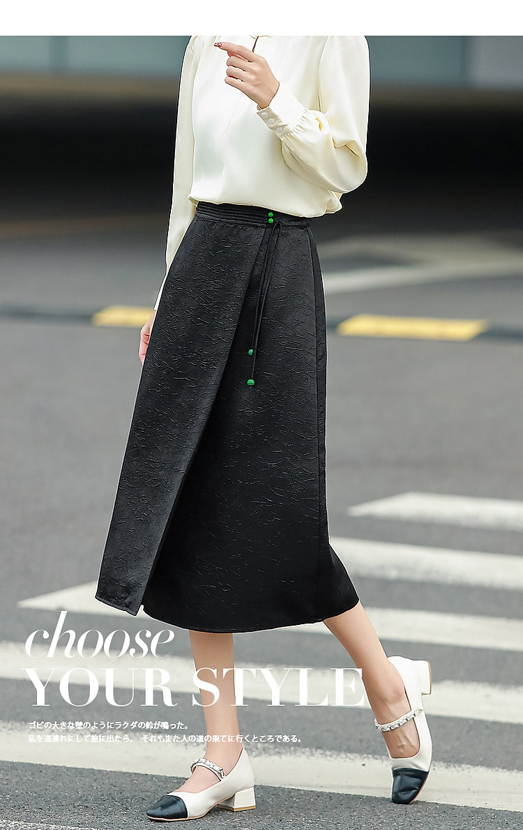 商品名称:【东方缪斯】秋季国风新中式古韵串珠装饰A字遮肉半身裙女中长款 526657