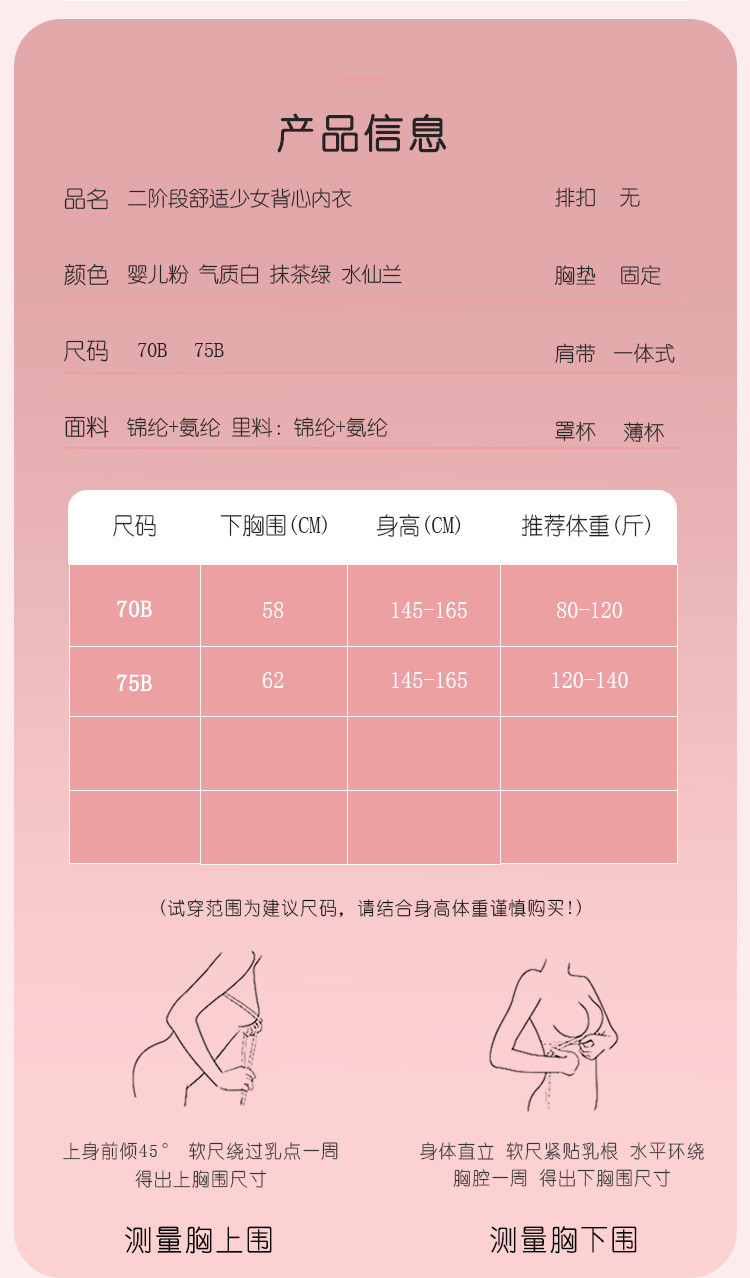 商品名称:【初中生内衣防凸点】女童打底背心文胸12岁以上发育期二阶文胸 253406