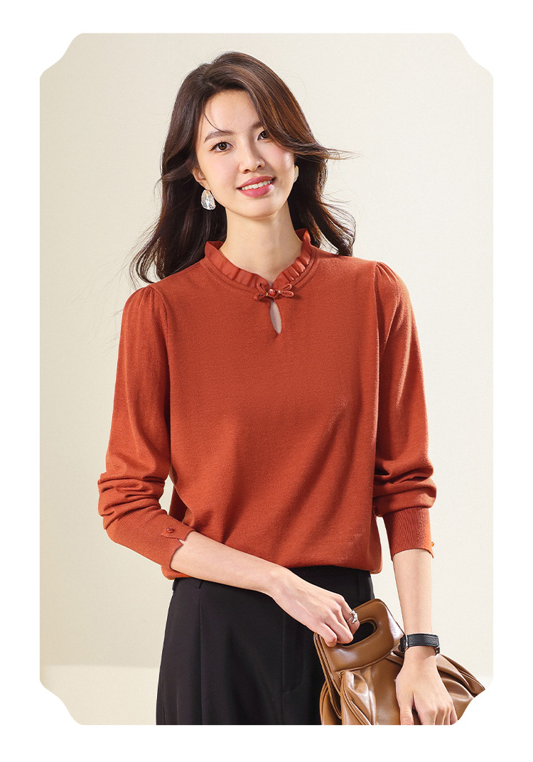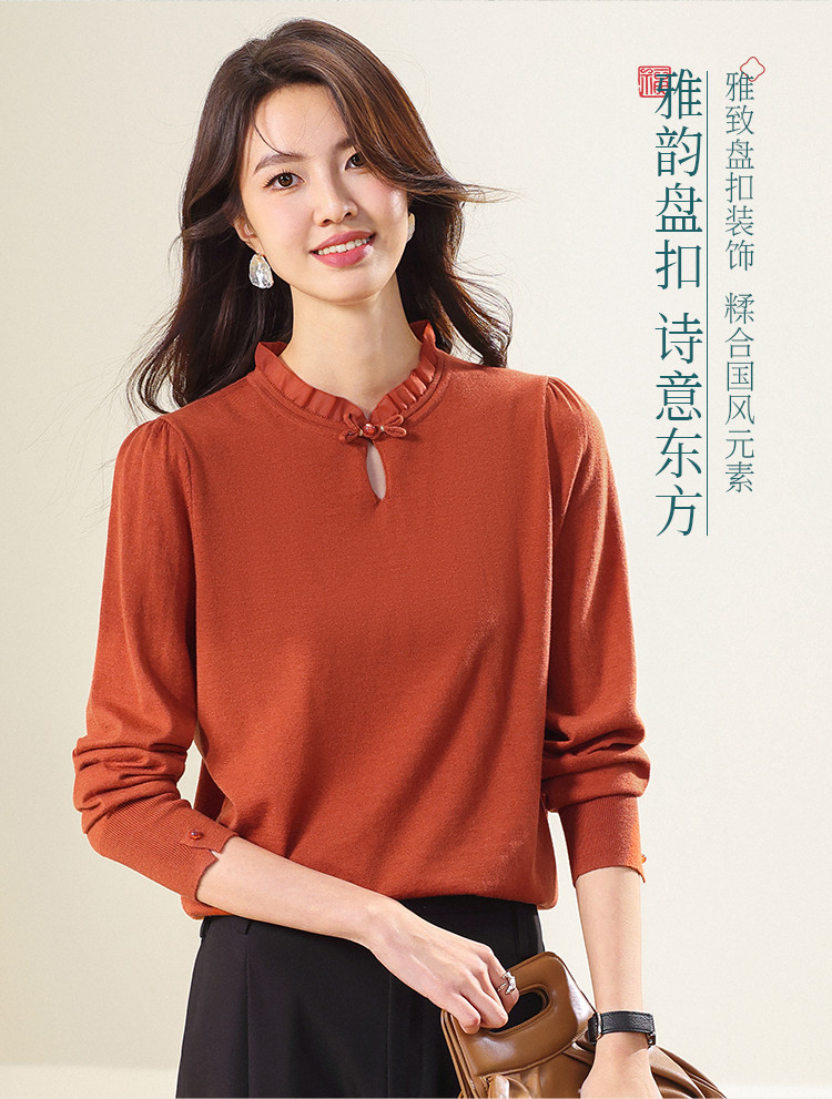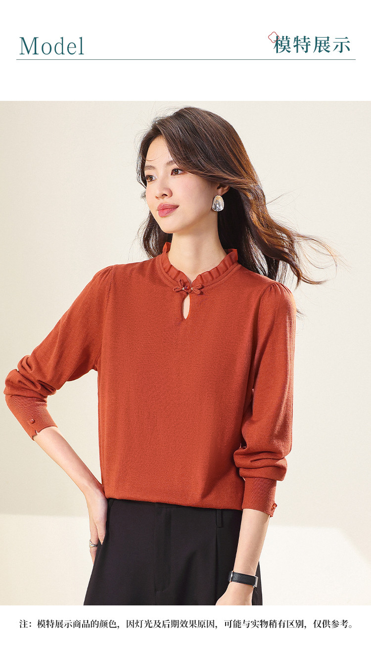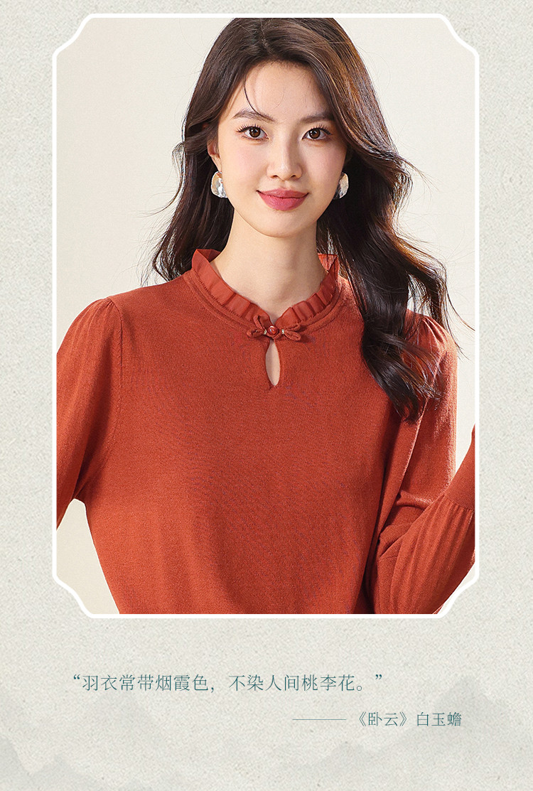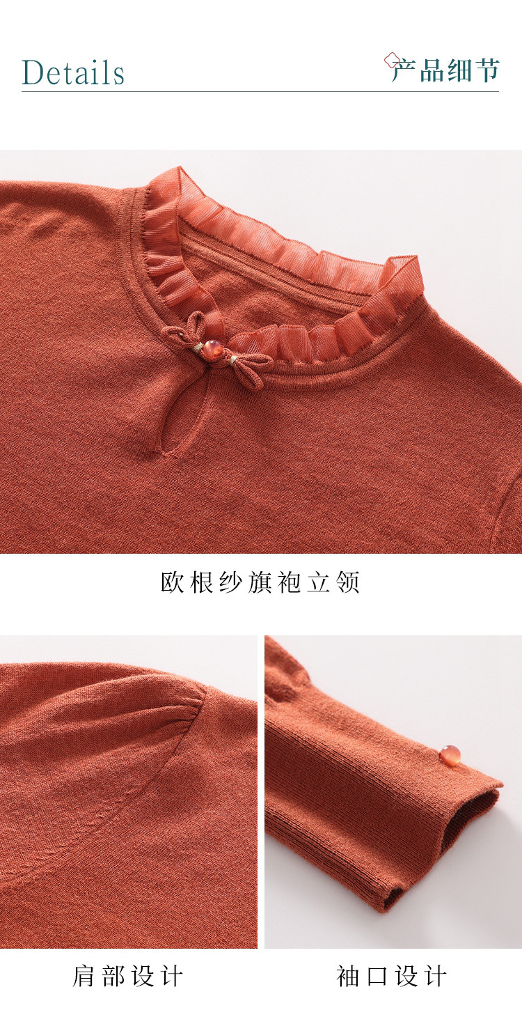 【国风】新中式欧根纱旗袍立领含羊毛针织打底衫毛衣套衫 168659