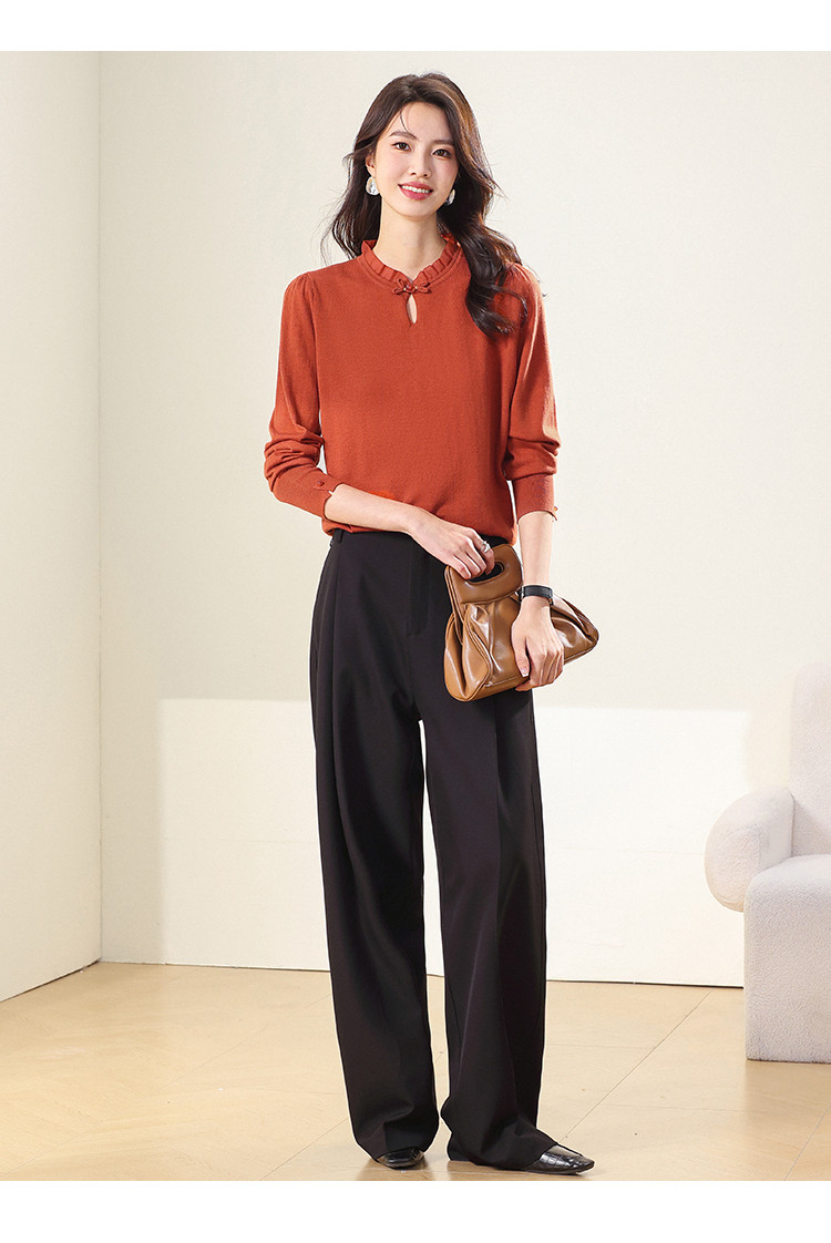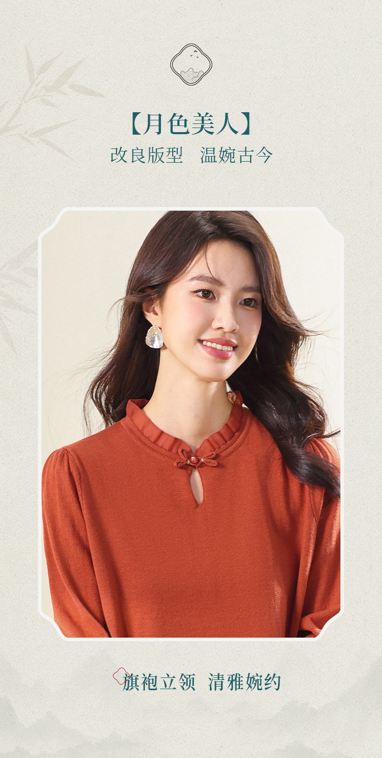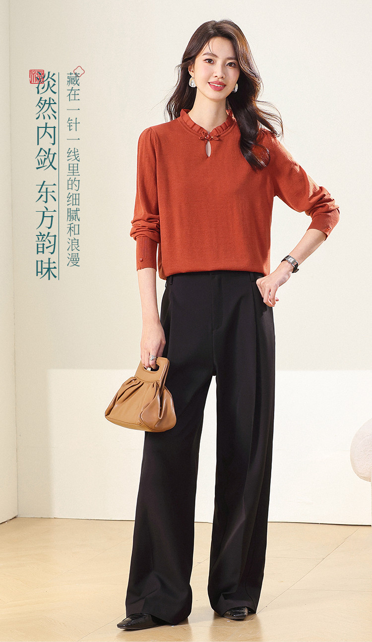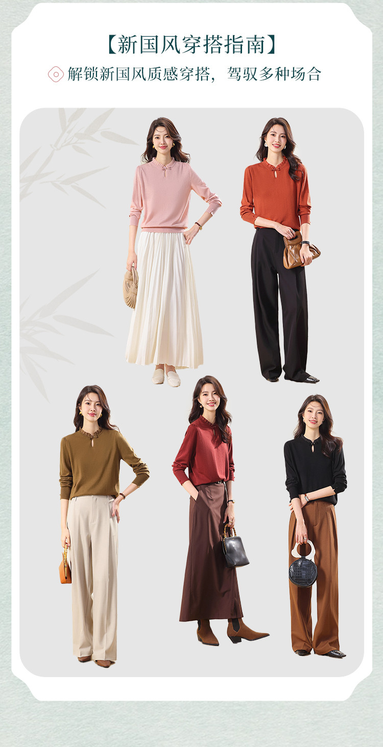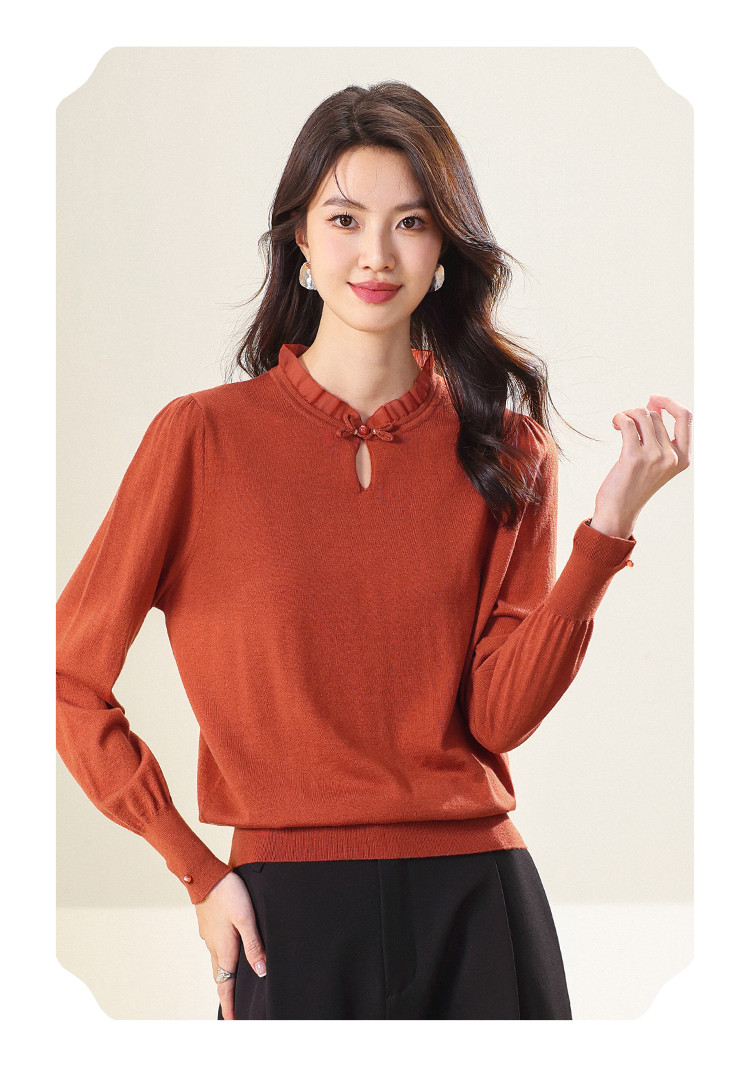 【国风】新中式欧根纱旗袍立领含羊毛针织打底衫毛衣套衫 168659
