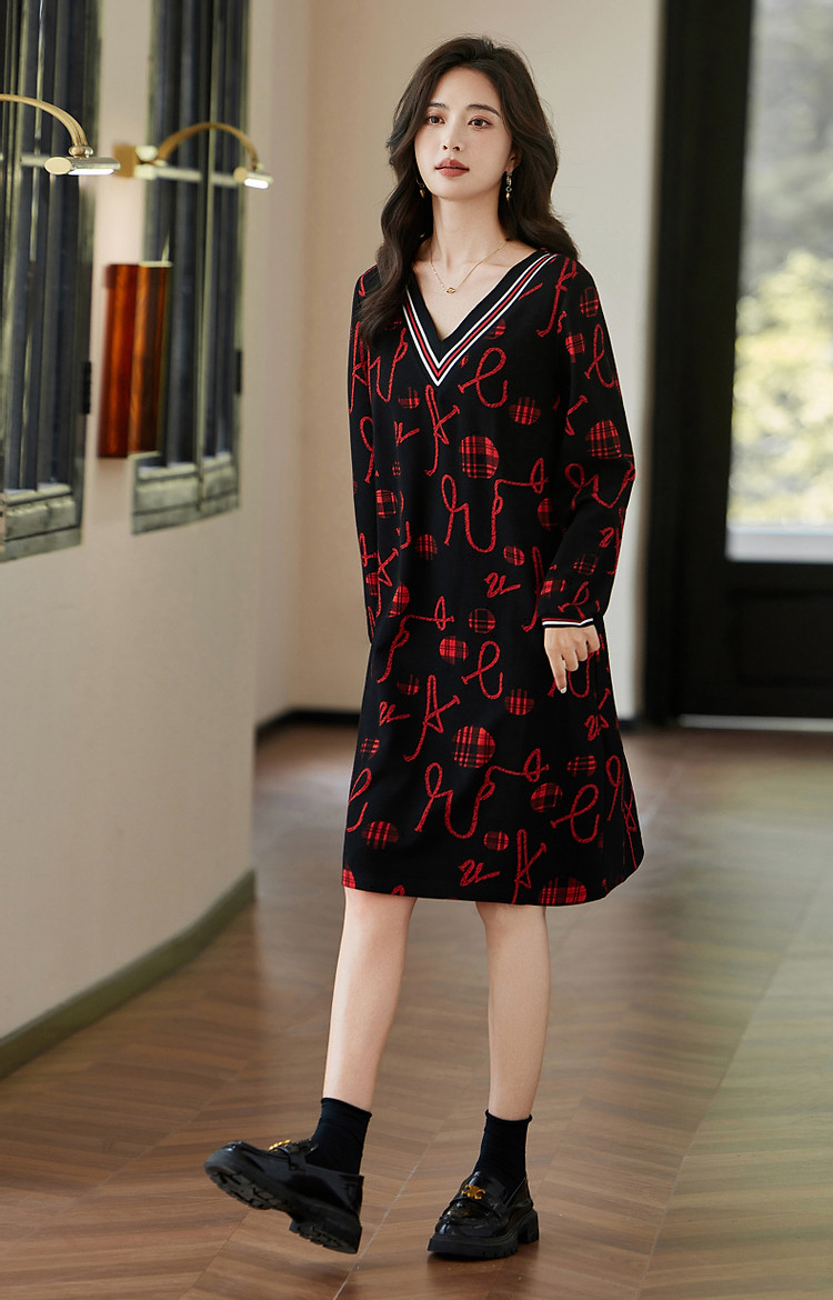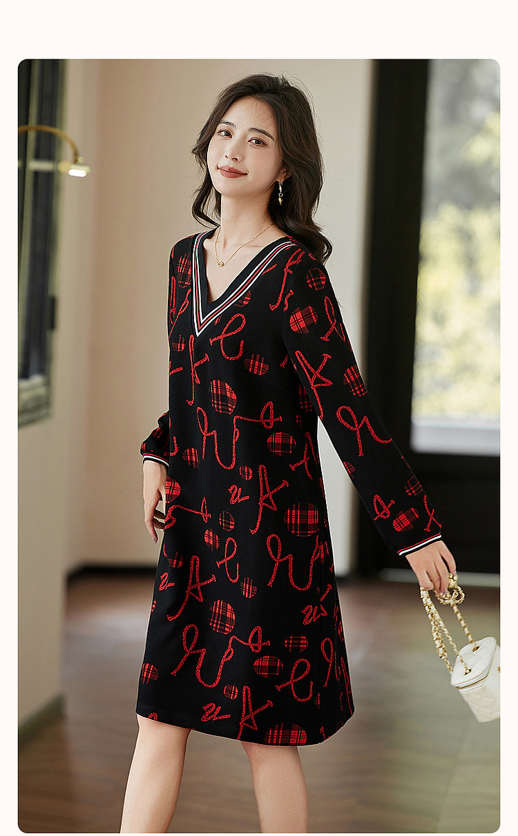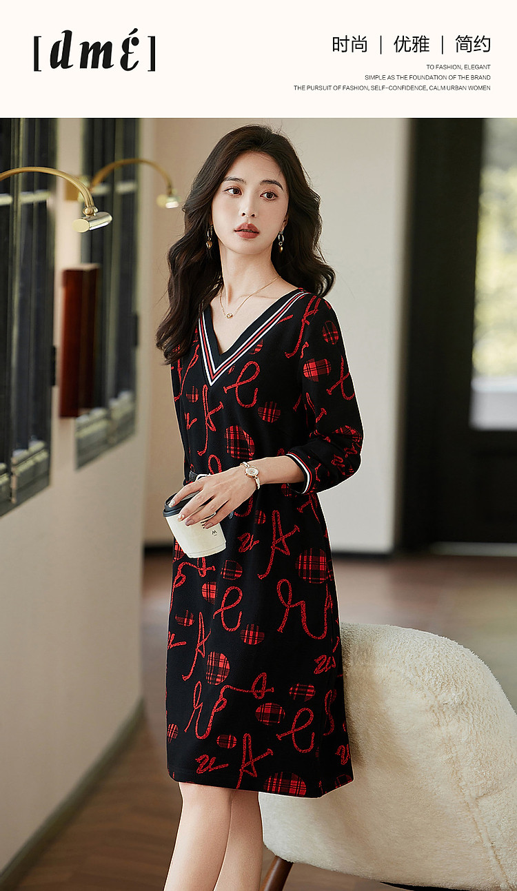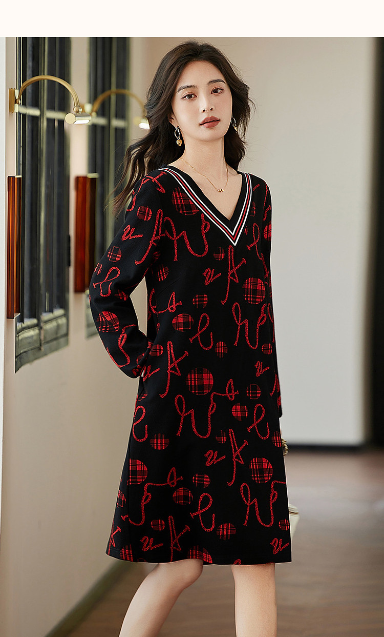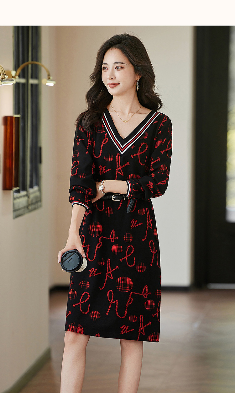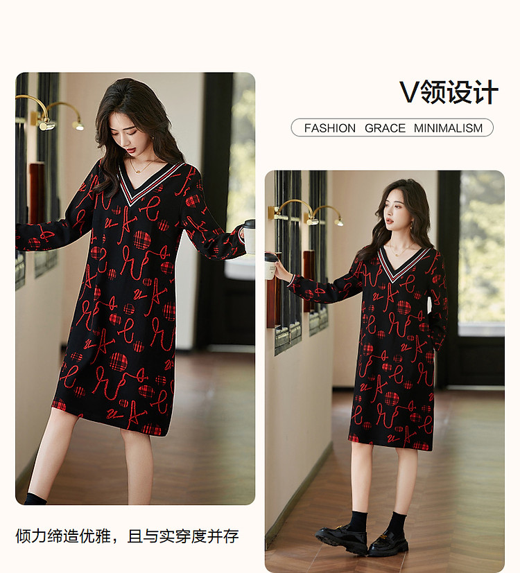 商品名称:【松弛一下】秋季办公室通勤V领宽松遮肉好搭针织连衣裙女中长款 642881