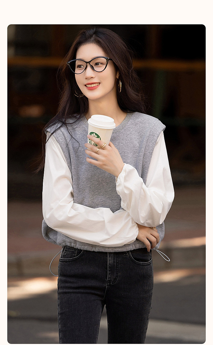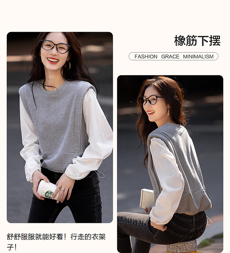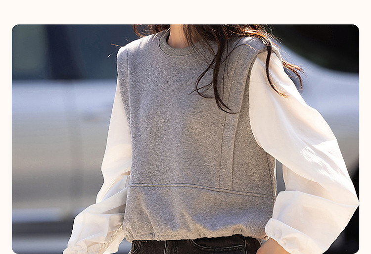 商品名称:【好穿不挑人】春季简约风云感棉立体活页可调节橡筋卫衣女上衣 015489