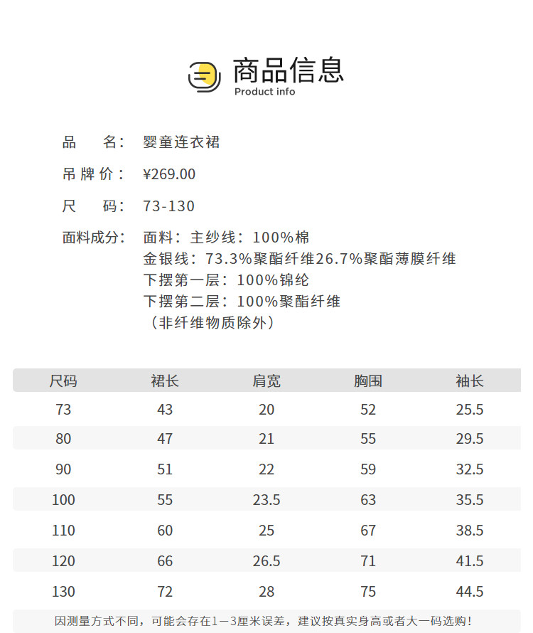 | 尺码 | 裙长(cm) | 肩宽(cm) | 身高(cm) | 袖长(cm) | 适合年龄 | 胸围(cm) | 号型 |