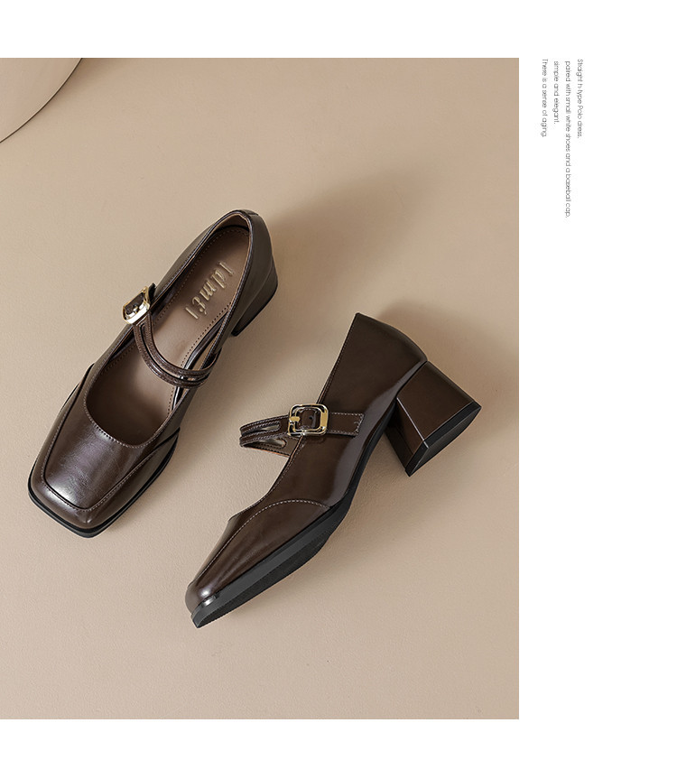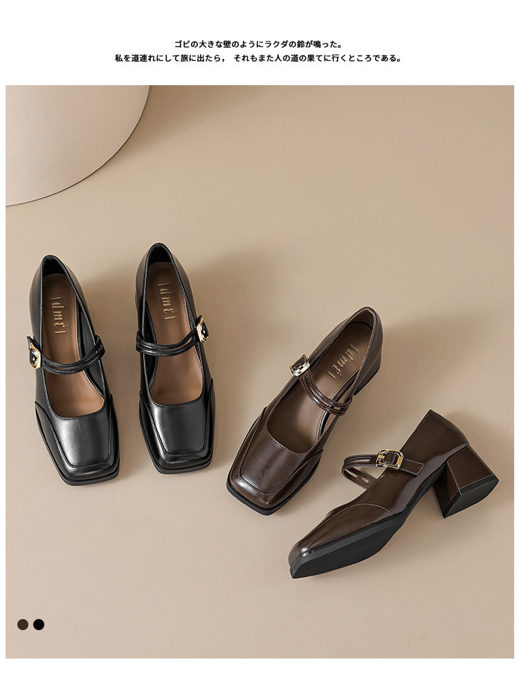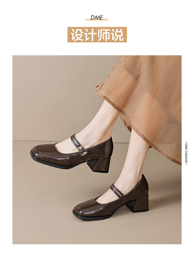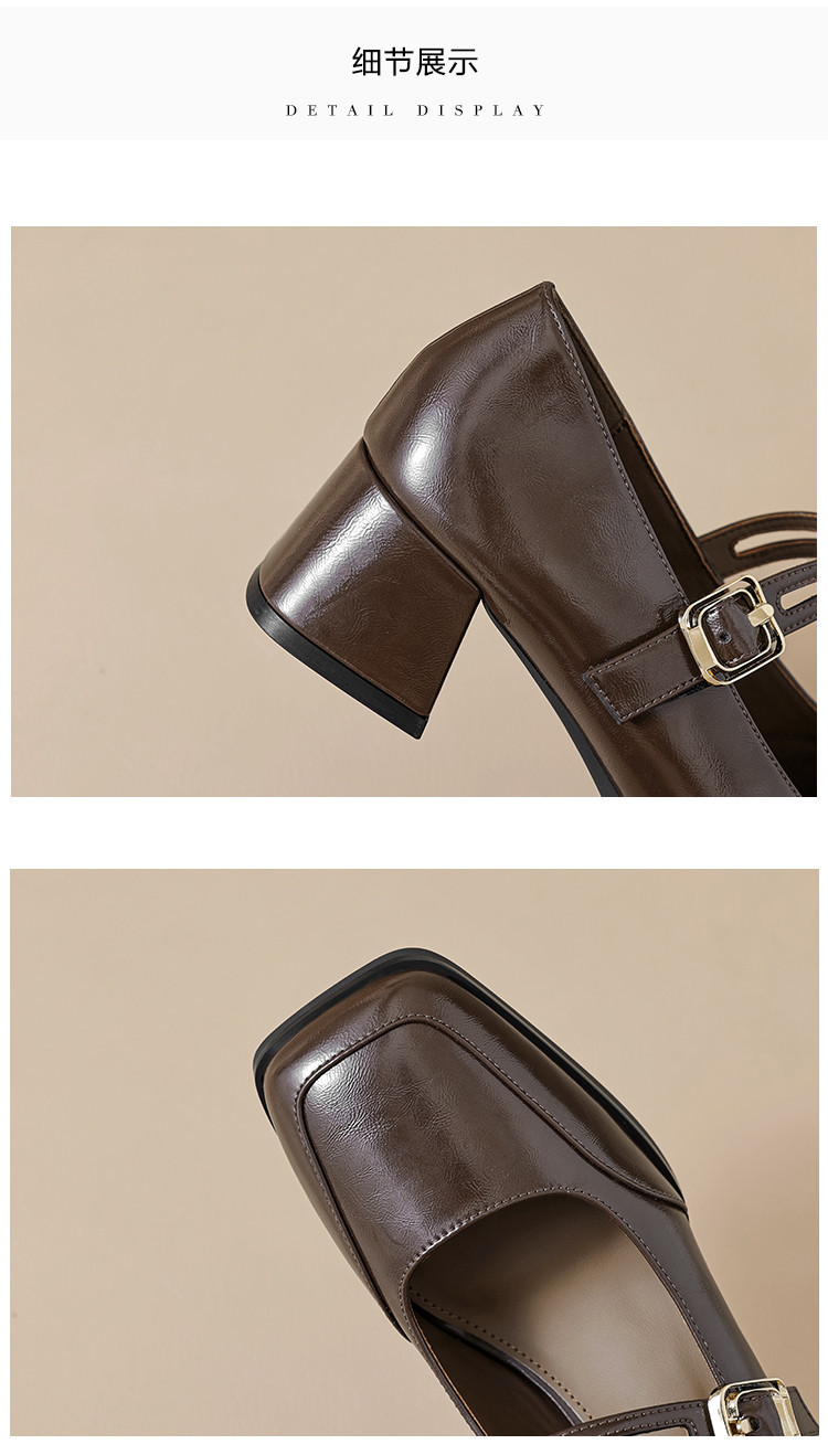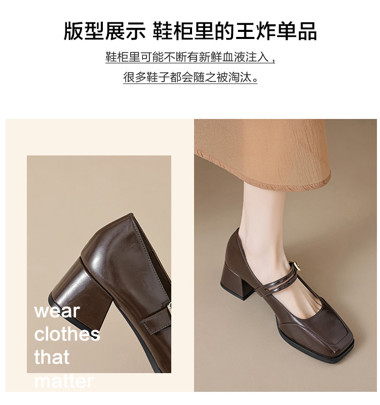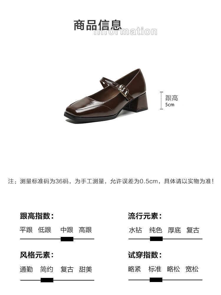 商品名称:2024秋季新款时尚简约百搭潮流方头拼接中跟玛丽珍女单鞋 799169