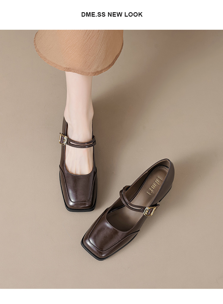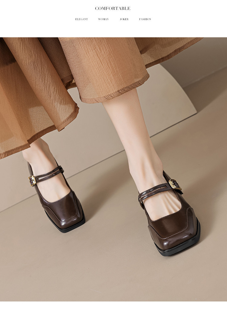 2024秋季新款时尚简约百搭潮流方头拼接中跟玛丽珍女单鞋 799169