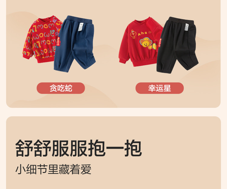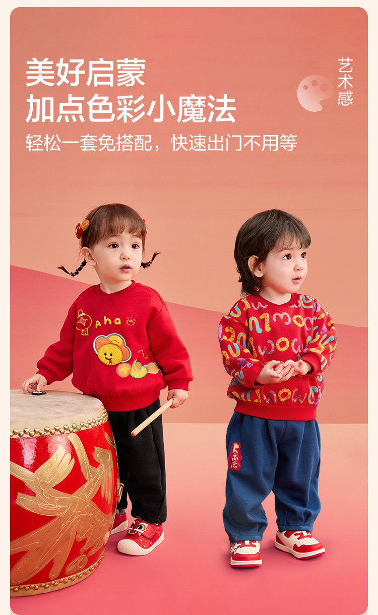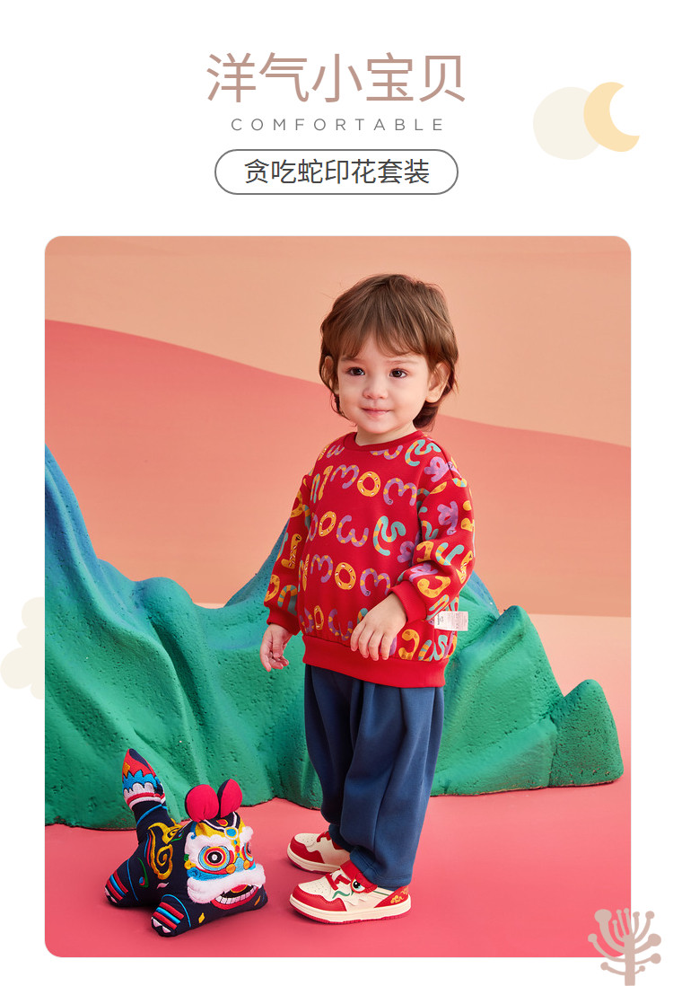 商品名称:国风长袖儿童套装婴幼套装卫衣男童女童春秋装宝宝小童潮童装 696837