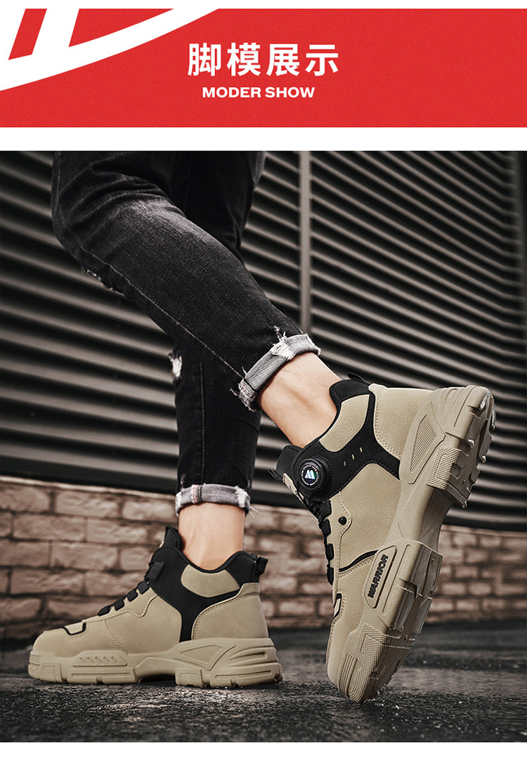 商品名称:【旋纽扣】男鞋秋冬季革面保暖户外徒步男登山鞋中帮工装鞋男 121808