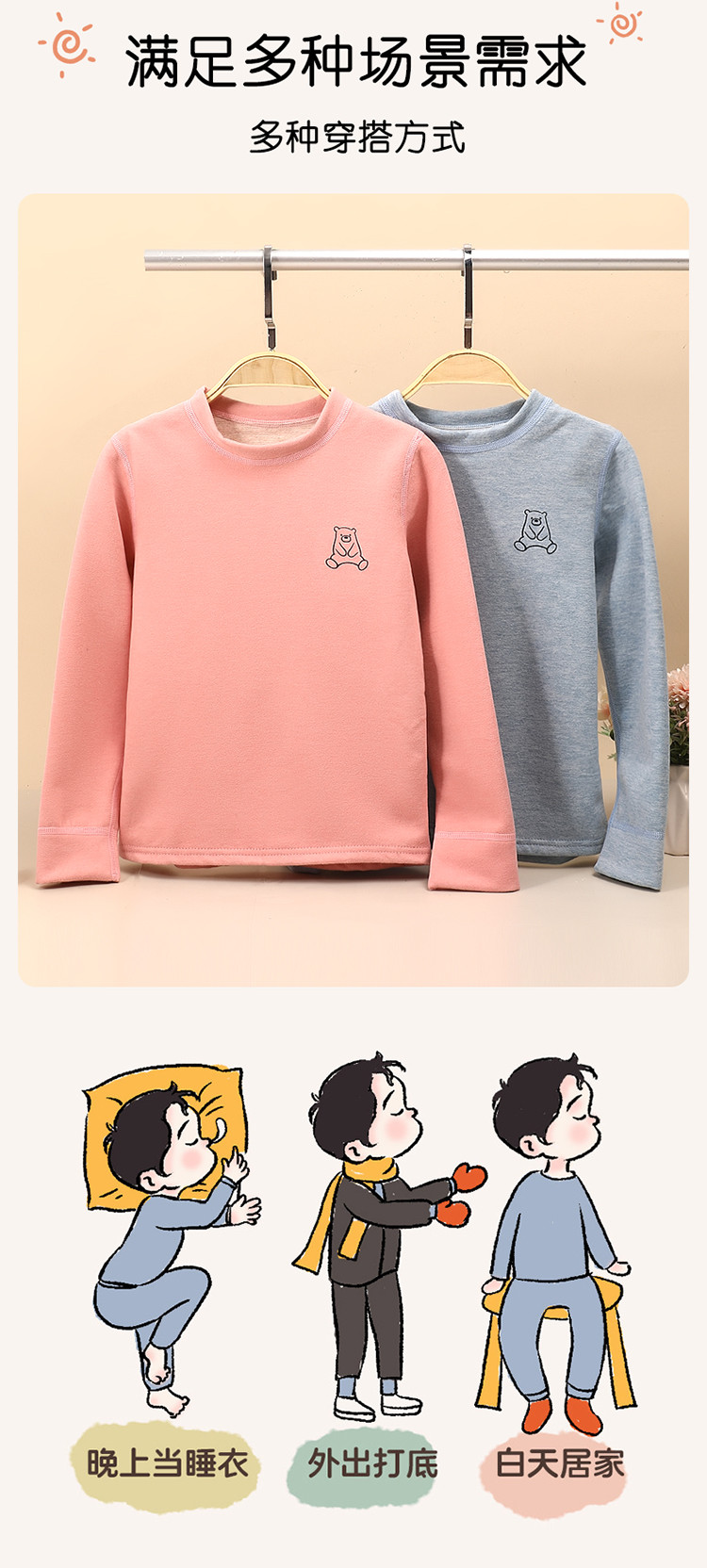 商品名称:【加厚双面磨绒】儿童可爱保暖套装男童女童秋衣秋裤秋冬睡衣 040222