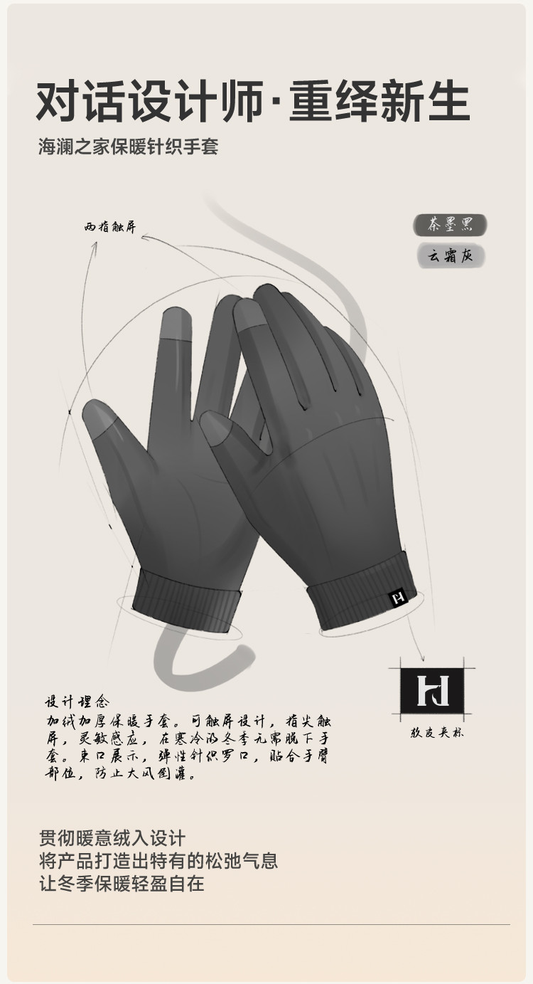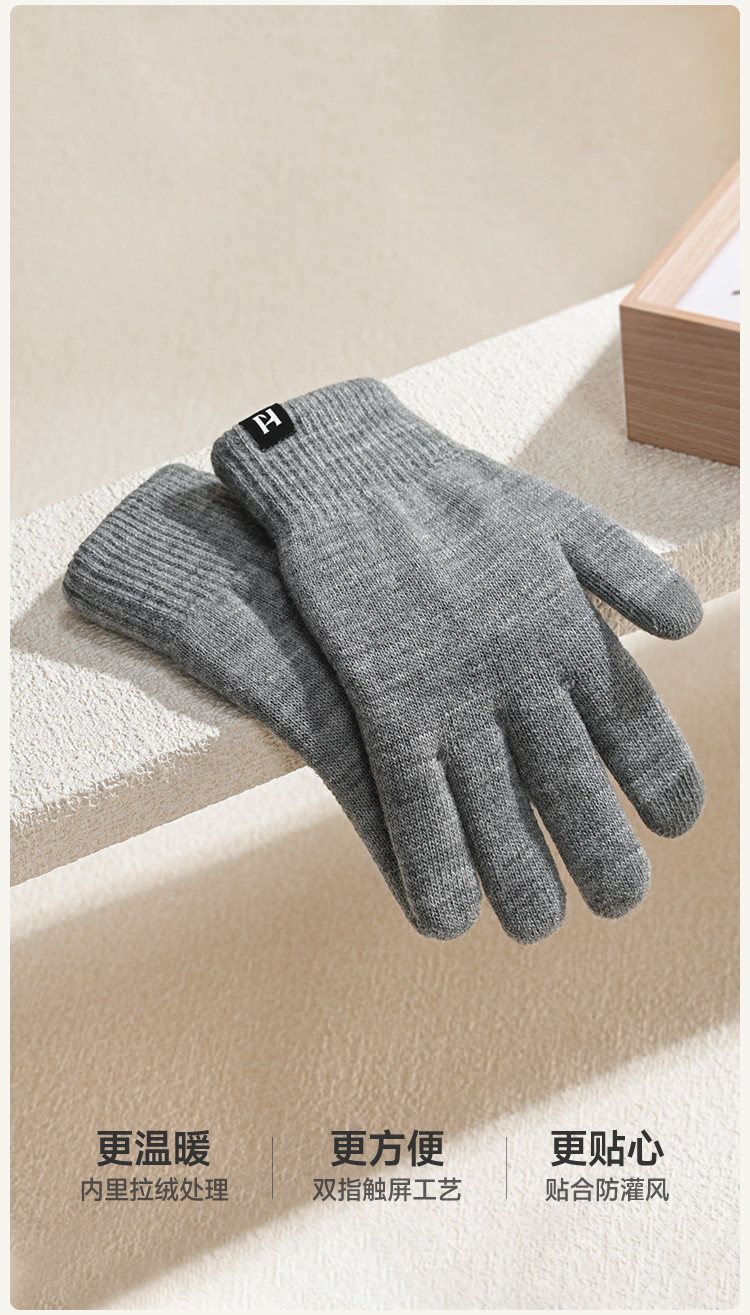 商品名称:加厚针织毛线手套男款2025款秋冬保暖骑车开车触屏户外保暖 783894