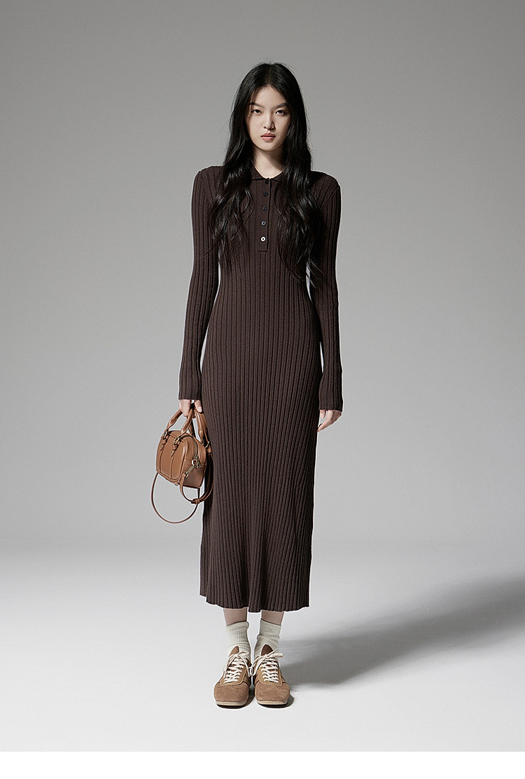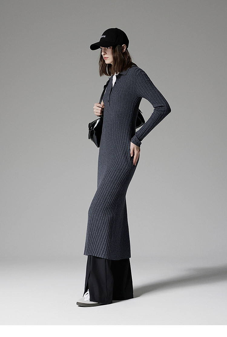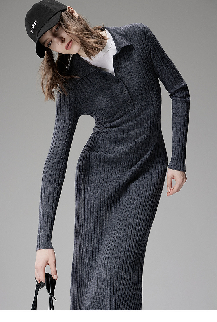 春装 长款气质优雅抗起球羊毛针织连衣裙 417871