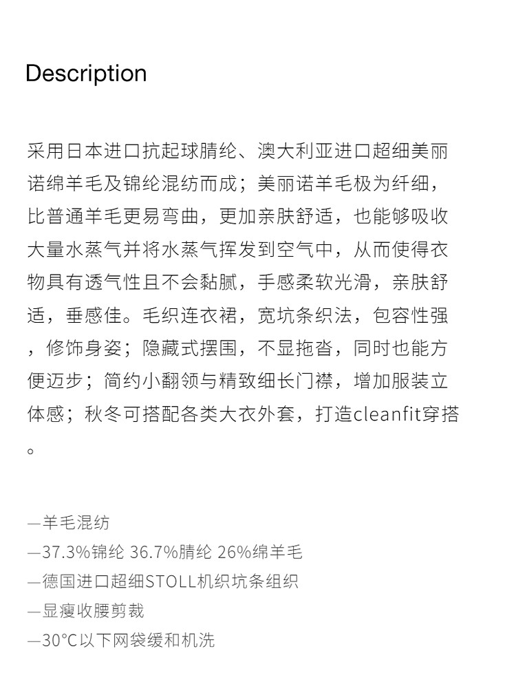 商品名称:春装 长款气质优雅抗起球羊毛针织连衣裙 417871