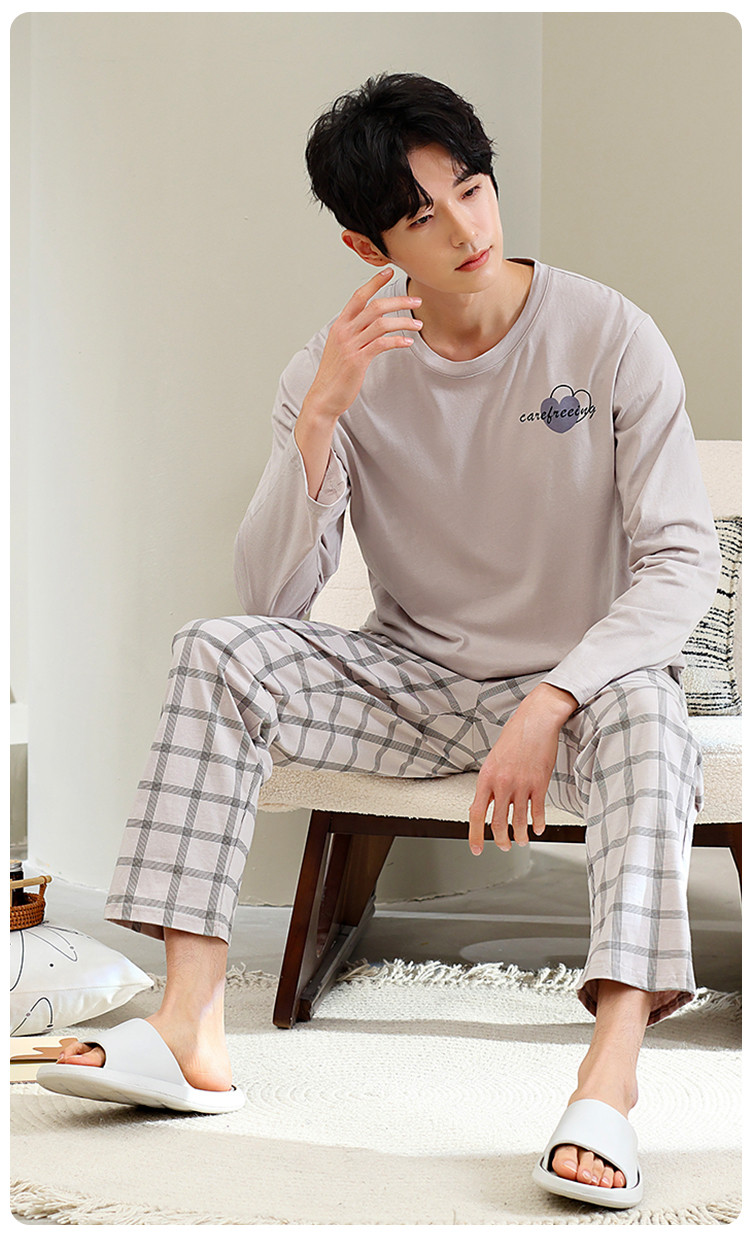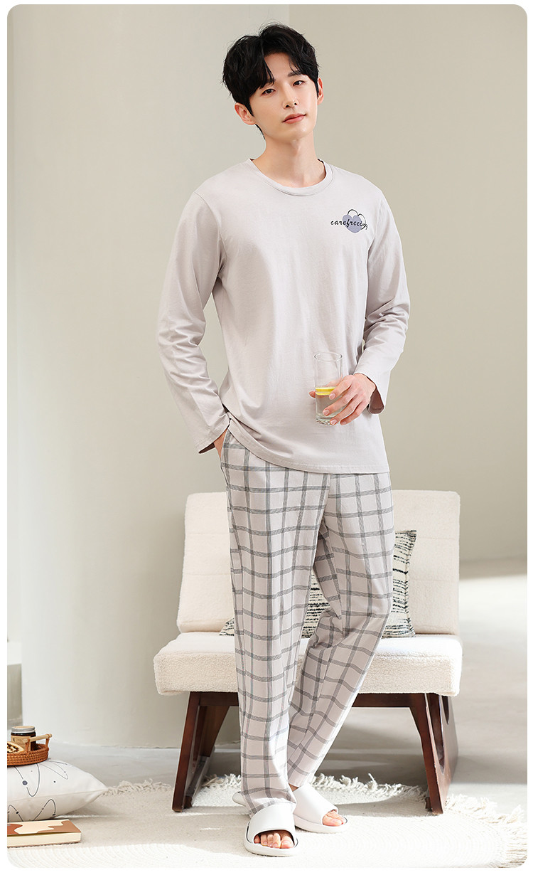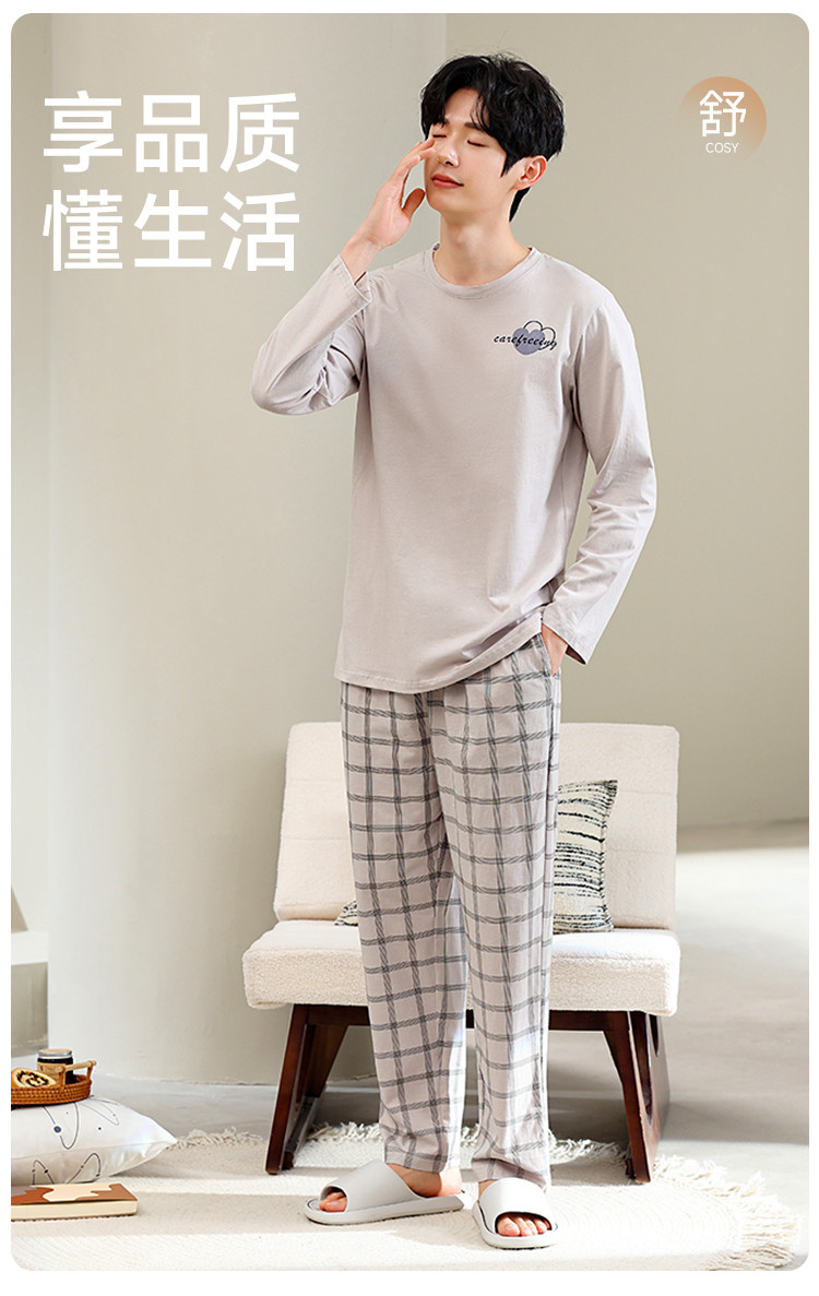 【100%棉】男士纯棉睡衣春秋长袖圆领可外穿两件套家居服睡衣 875019