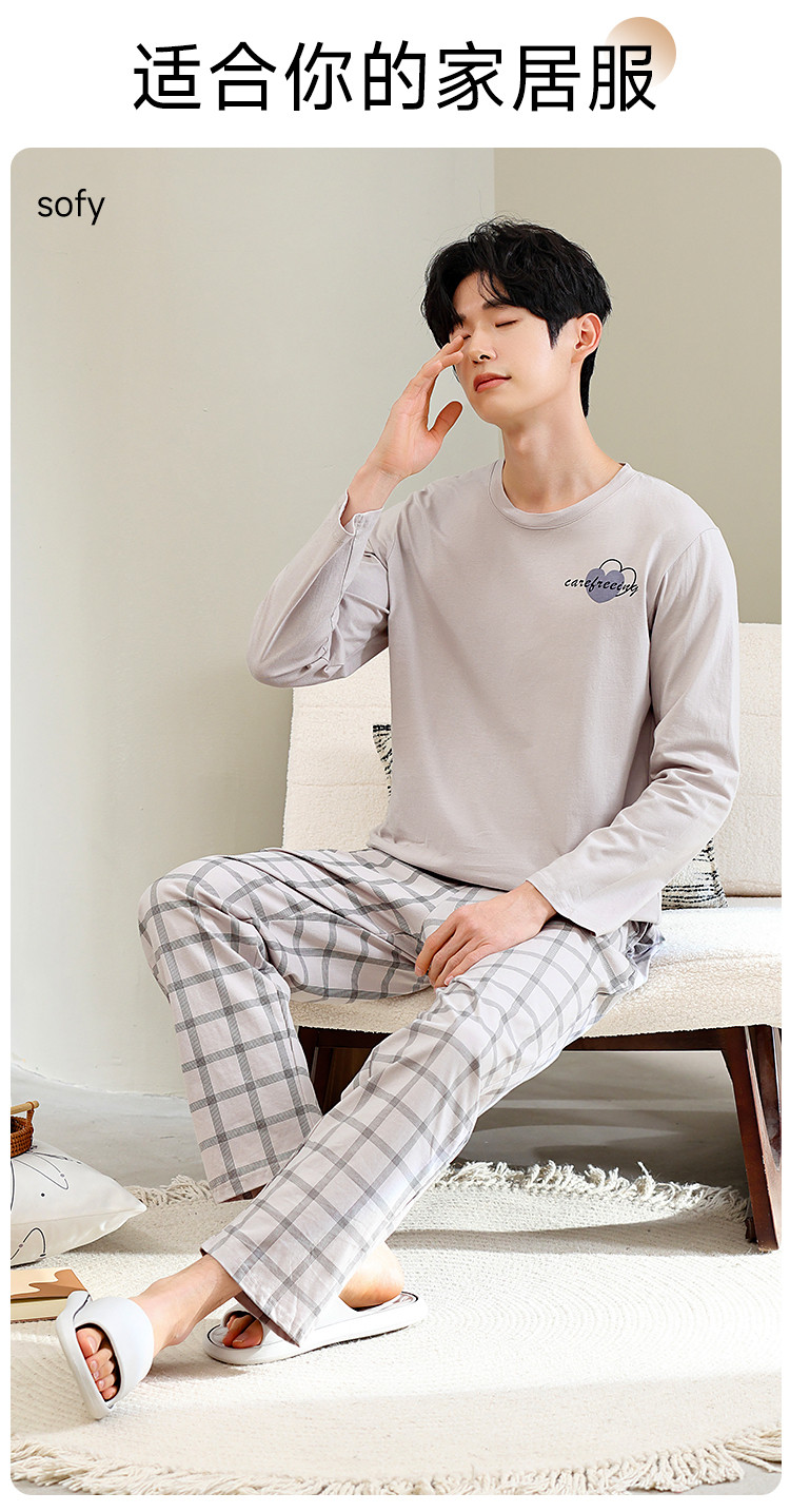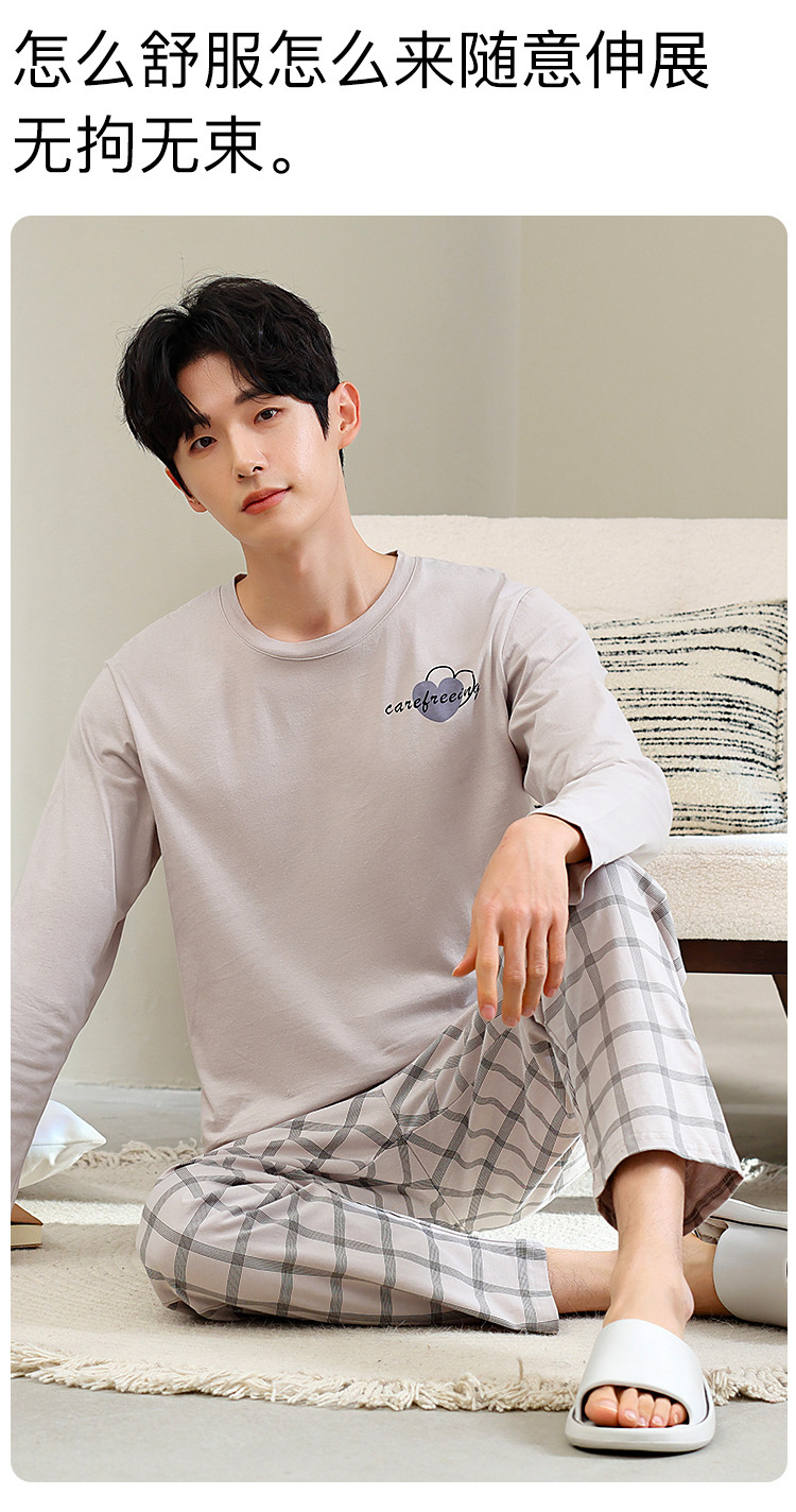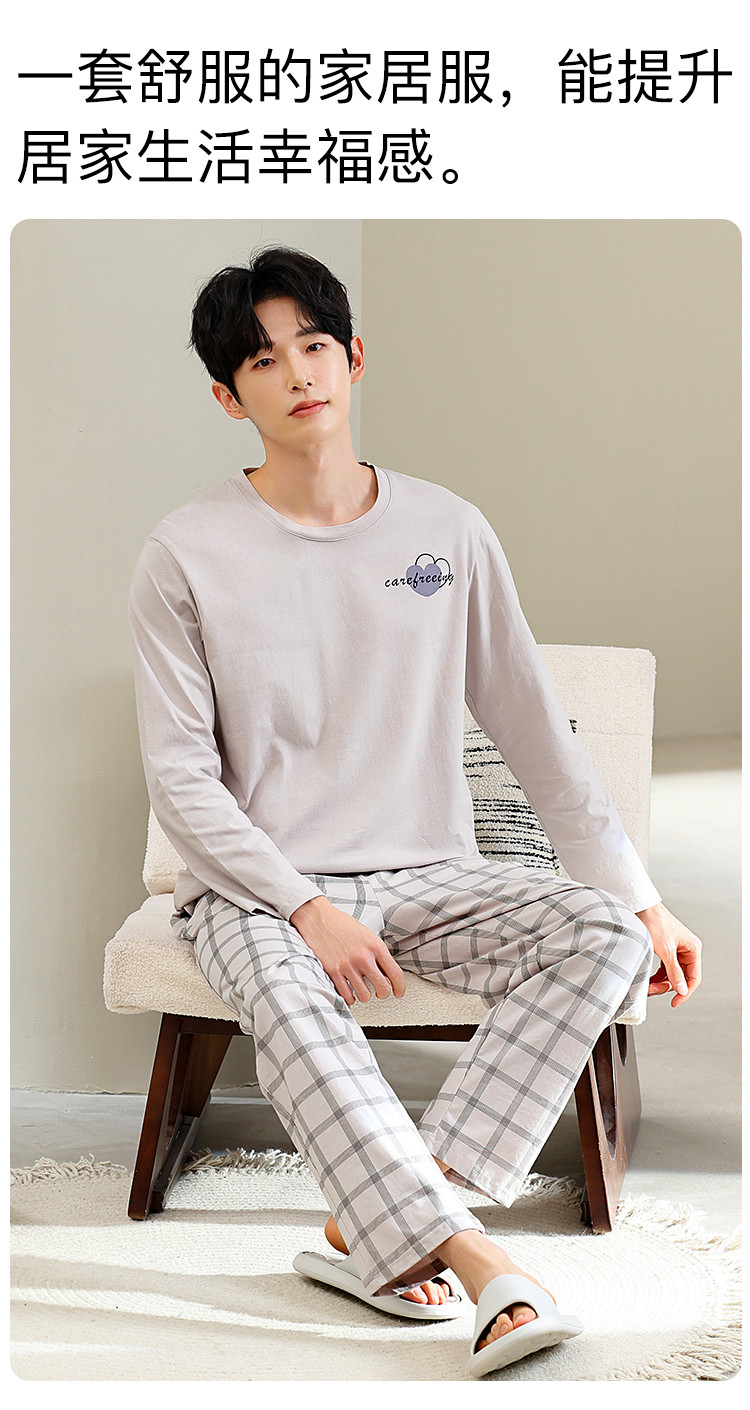 商品名称:【100%棉】男士纯棉睡衣春秋长袖圆领可外穿两件套家居服睡衣 875019