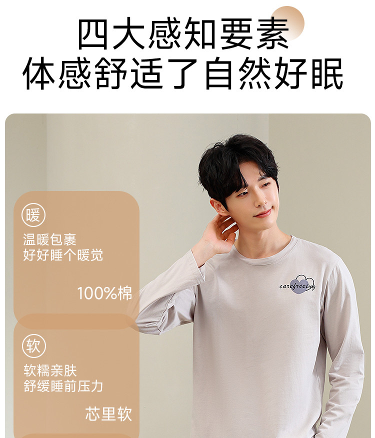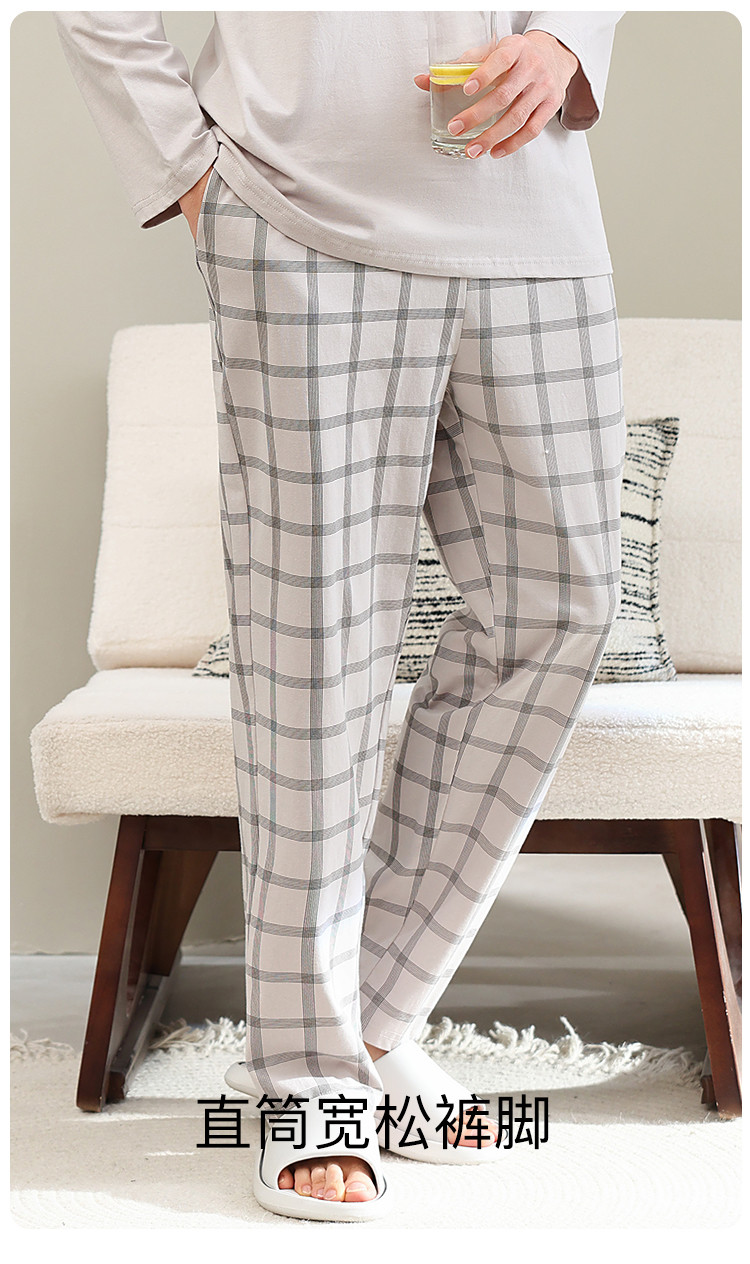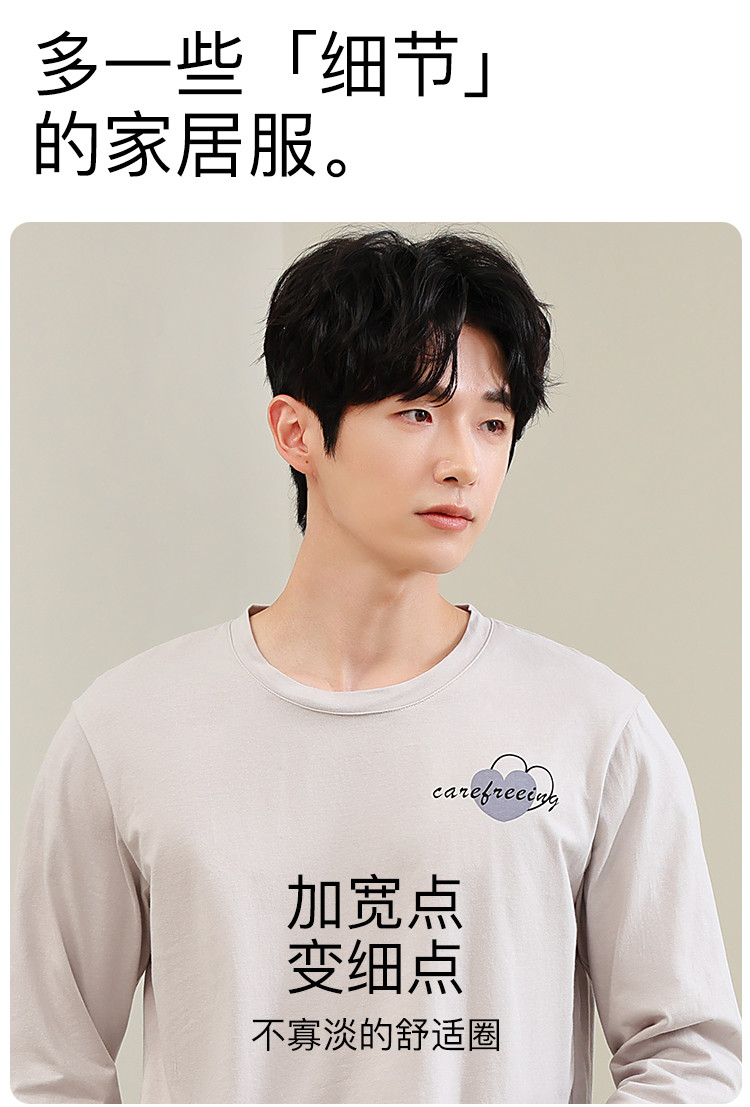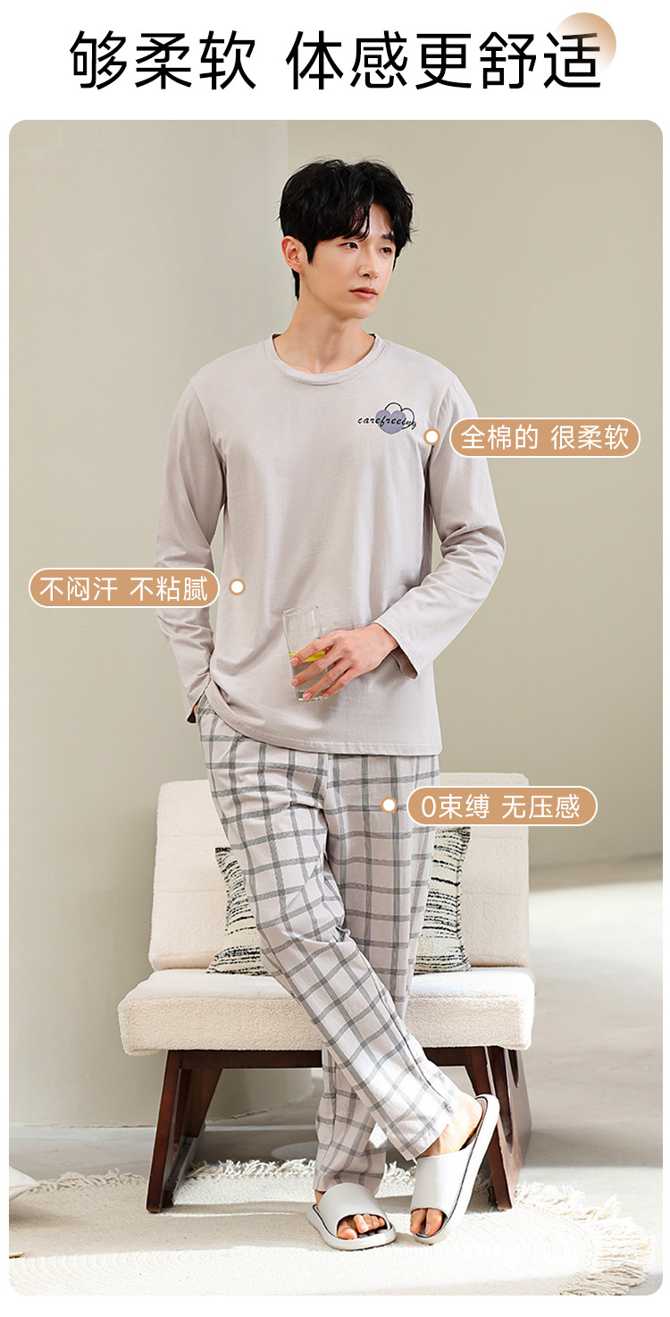 商品名称:【100%棉】男士纯棉睡衣春秋长袖圆领可外穿两件套家居服睡衣 875019