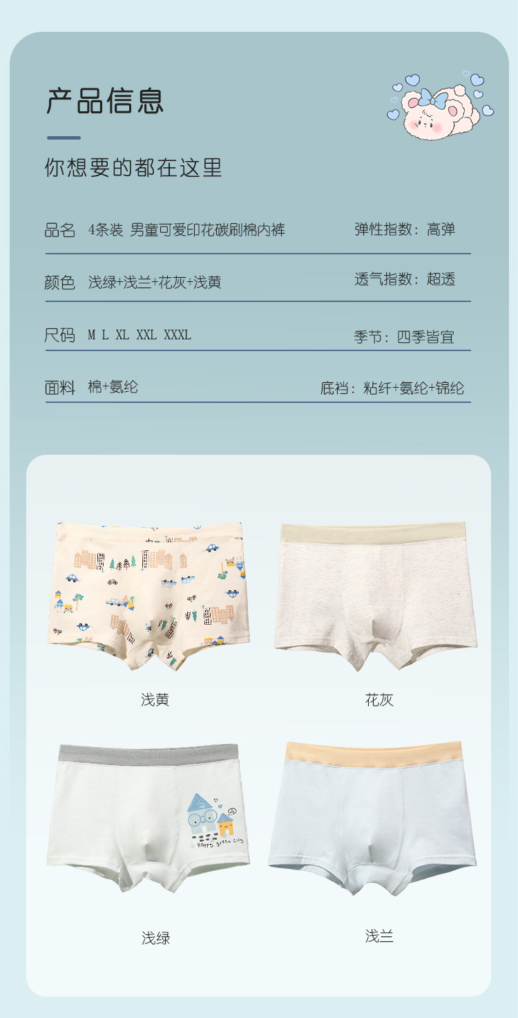 商品名称:【95%棉】不勒肚子4条装舒适透气不闷热男童内裤儿童四角裤新 000286
