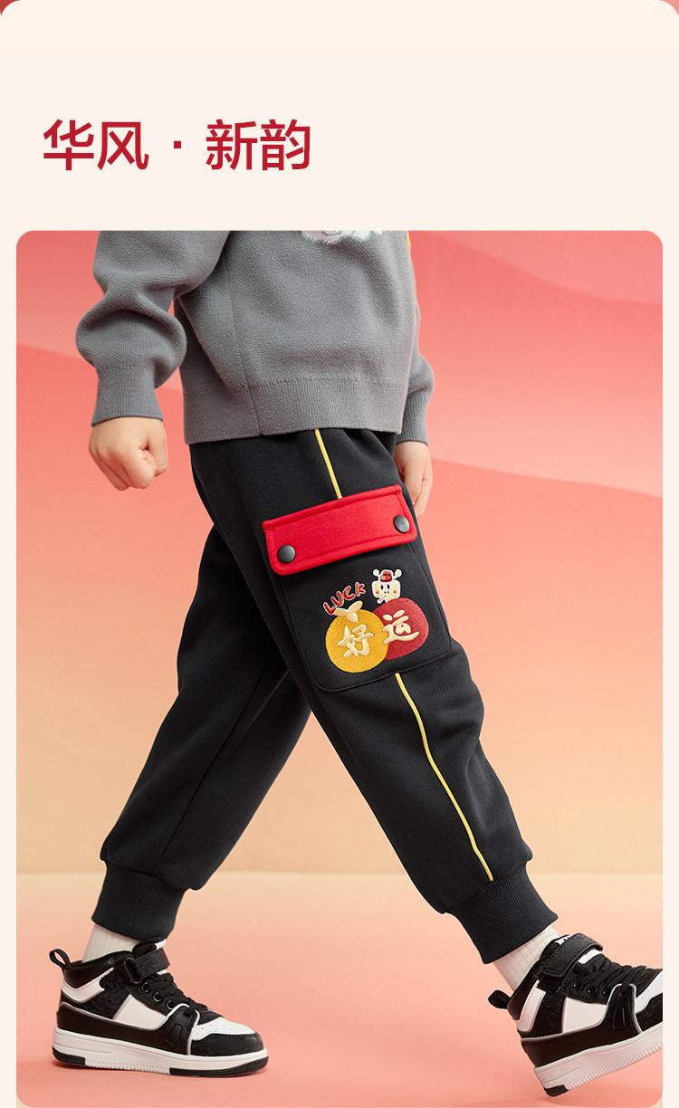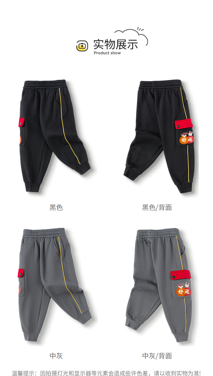 商品名称:工装裤男童长裤女童裤子儿童2025春秋新款小童束脚裤中大童 372485