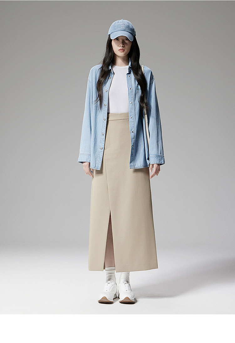 中长款气质通勤羊毛精纺直筒半身裙 147279