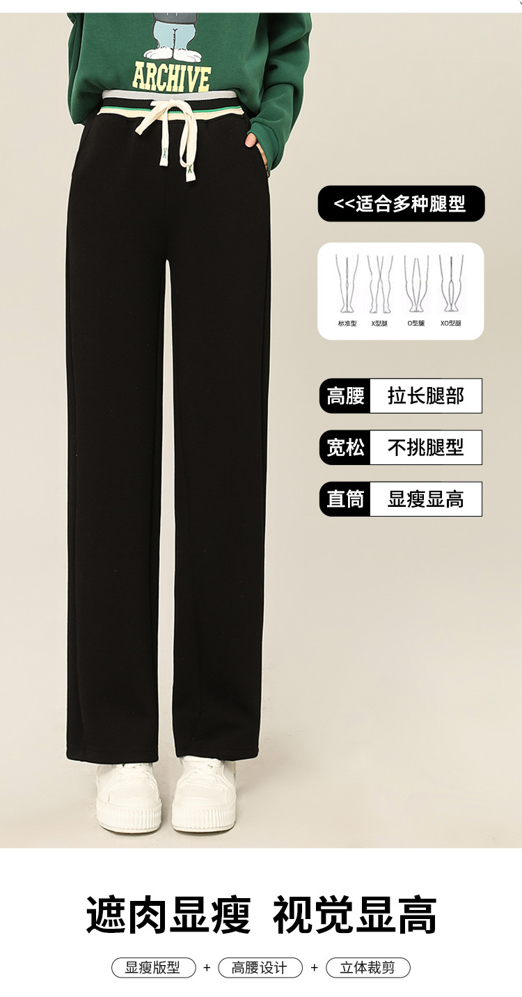 【经典通勤实穿】纯色直筒裤子女运动直筒裤时尚高腰显瘦休闲裤女 577944