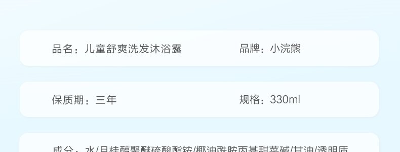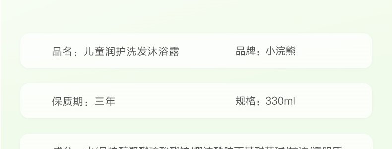 商品名称:小浣熊 儿童润护洗发沐浴露 330ml