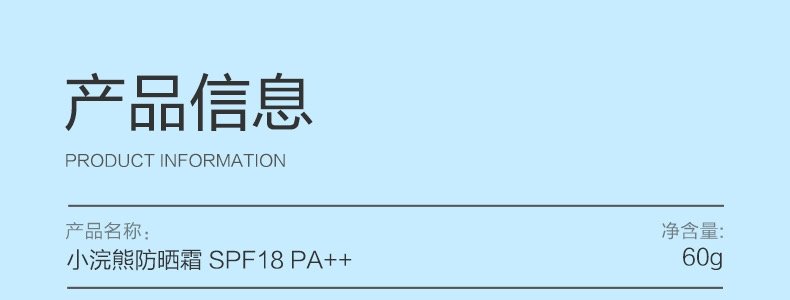 商品名称:小浣熊防晒霜SPF18 PA++ 60g