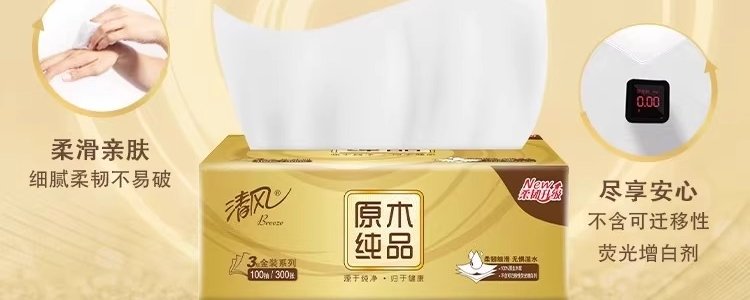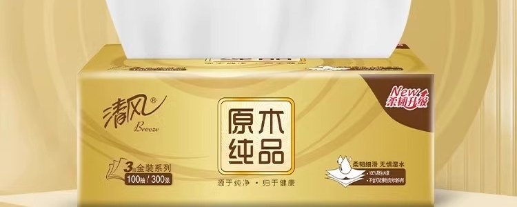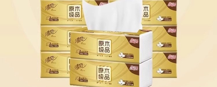 清风 纸巾家用纸抽实惠装3层 100抽*3包