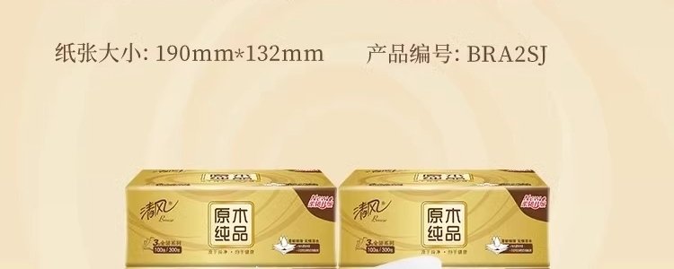 商品名称:清风 纸巾家用纸抽实惠装3层 100抽*3包