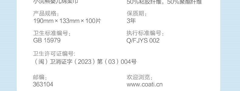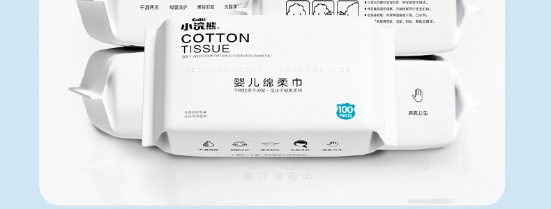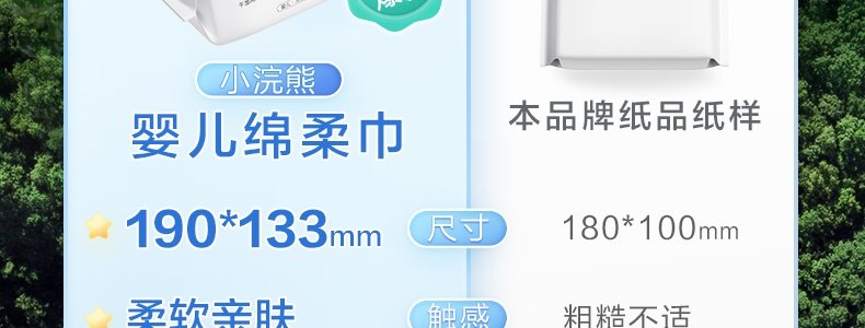 商品名称:小浣熊 婴儿绵柔巾 100抽/包*5包