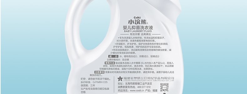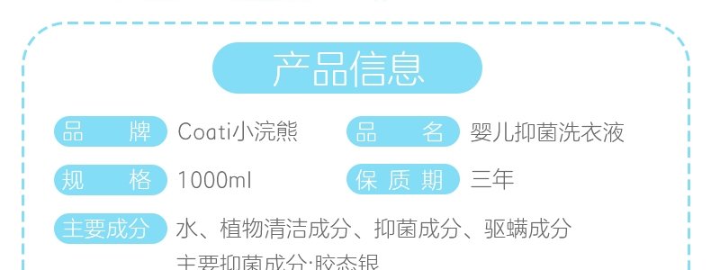 商品名称:小浣熊 婴儿抑菌驱螨洗衣液 1L/瓶