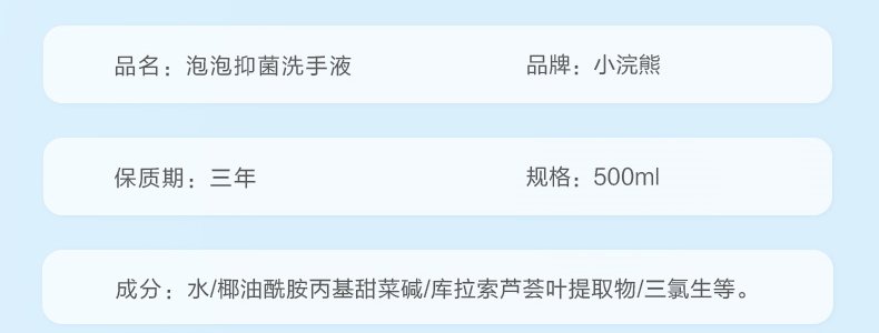 商品名称:小浣熊 泡泡抑菌洗手液 500ml