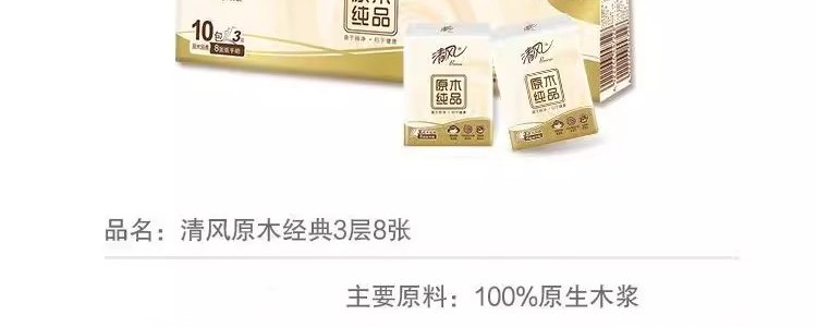商品名称:清风 原木纯品手帕纸3层无香纸巾小包便携式 10包*10条