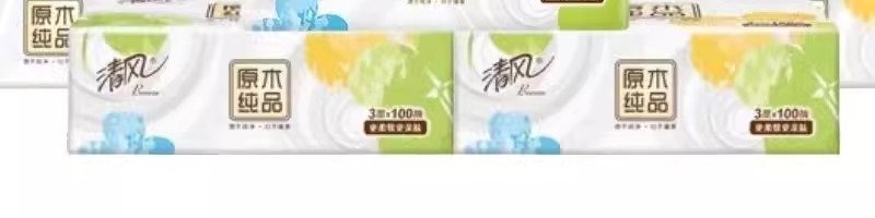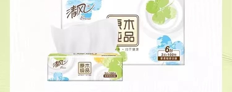 商品名称:清风 原木纯品纸巾 100抽*6包/提