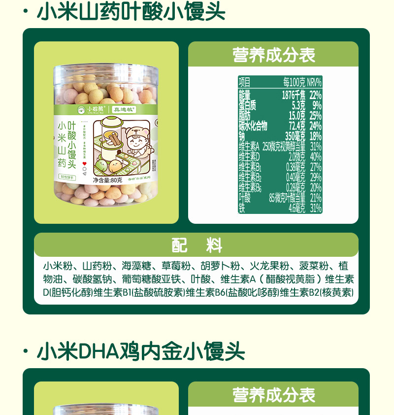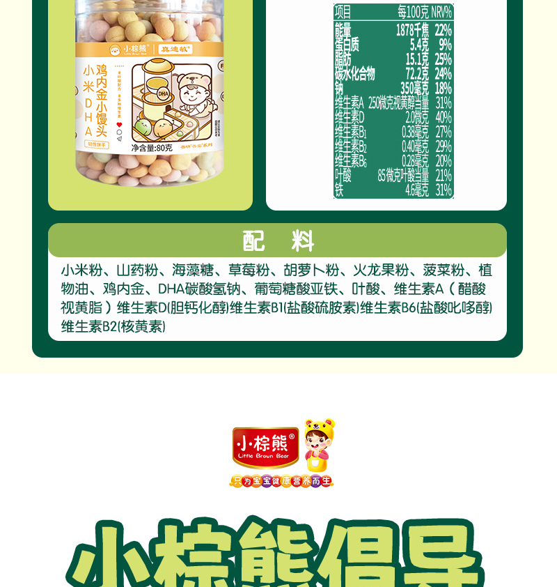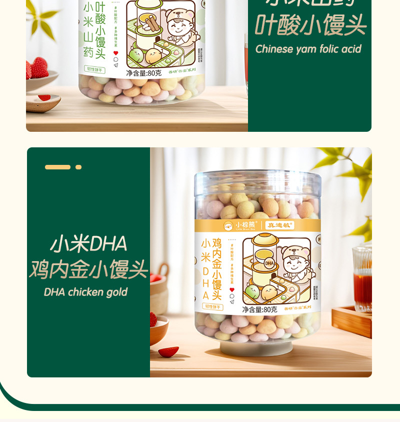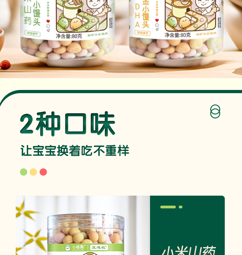 小棕熊无小麦无蛋奶小米山药叶酸DHA鸡内金2味可选小馒头小零食婴幼儿