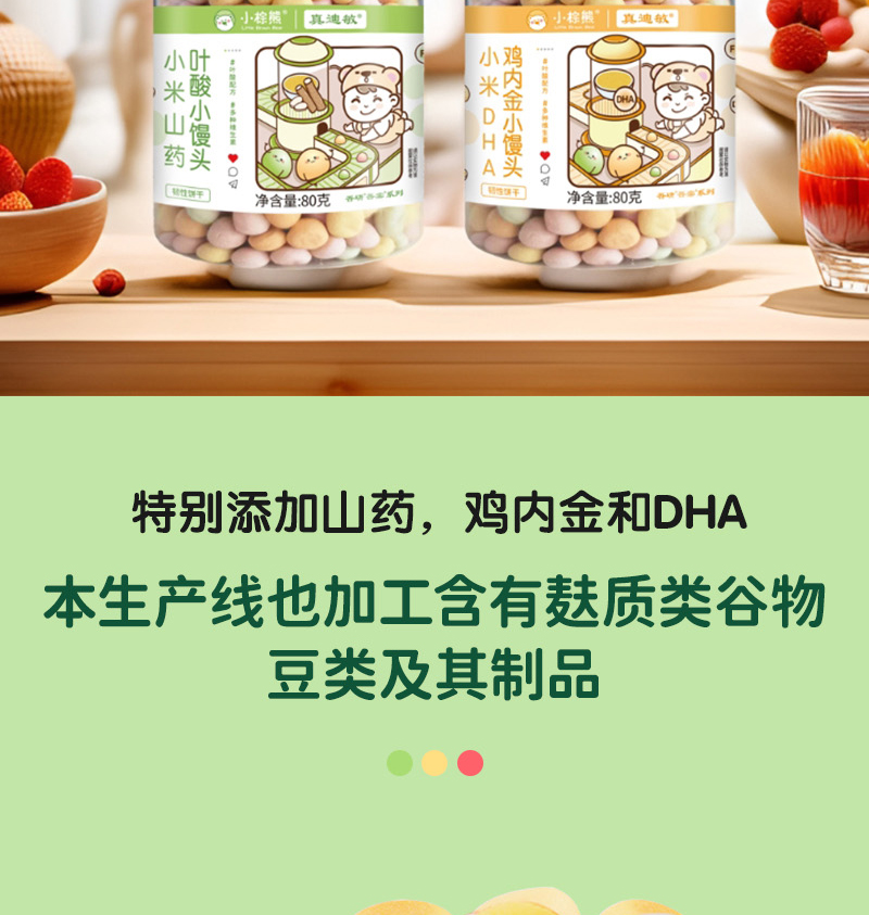 商品名称:小棕熊无小麦无蛋奶小米山药叶酸DHA鸡内金2味可选小馒头小零食婴幼儿