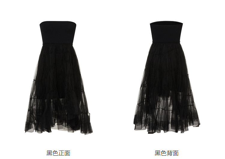 地素夏秋针织网纱拼接礼裙裹胸抹胸连衣裙女 492939