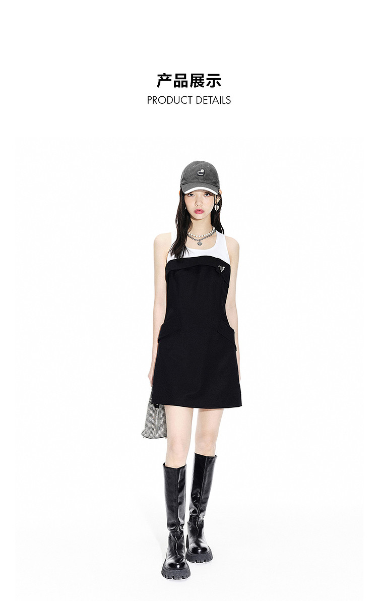 商品名称:地素夏秋专柜甜酷少女黑白撞色拼接无袖连衣裙女 244043