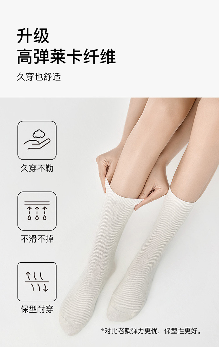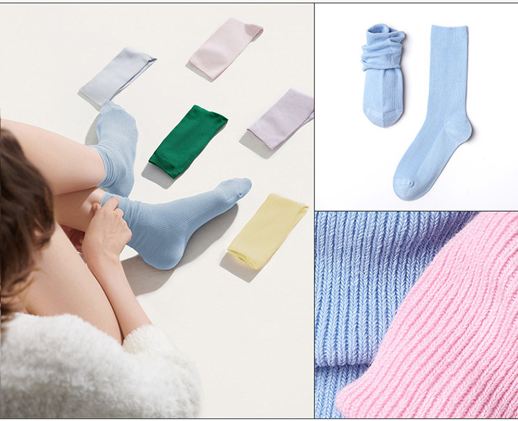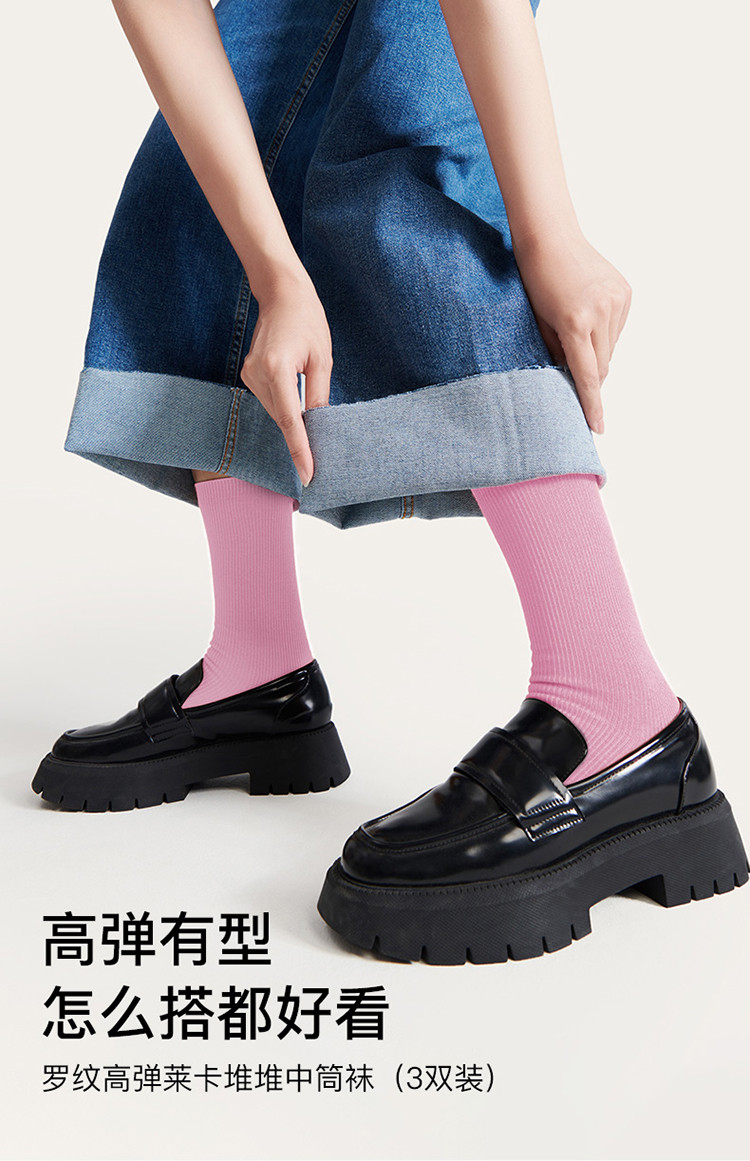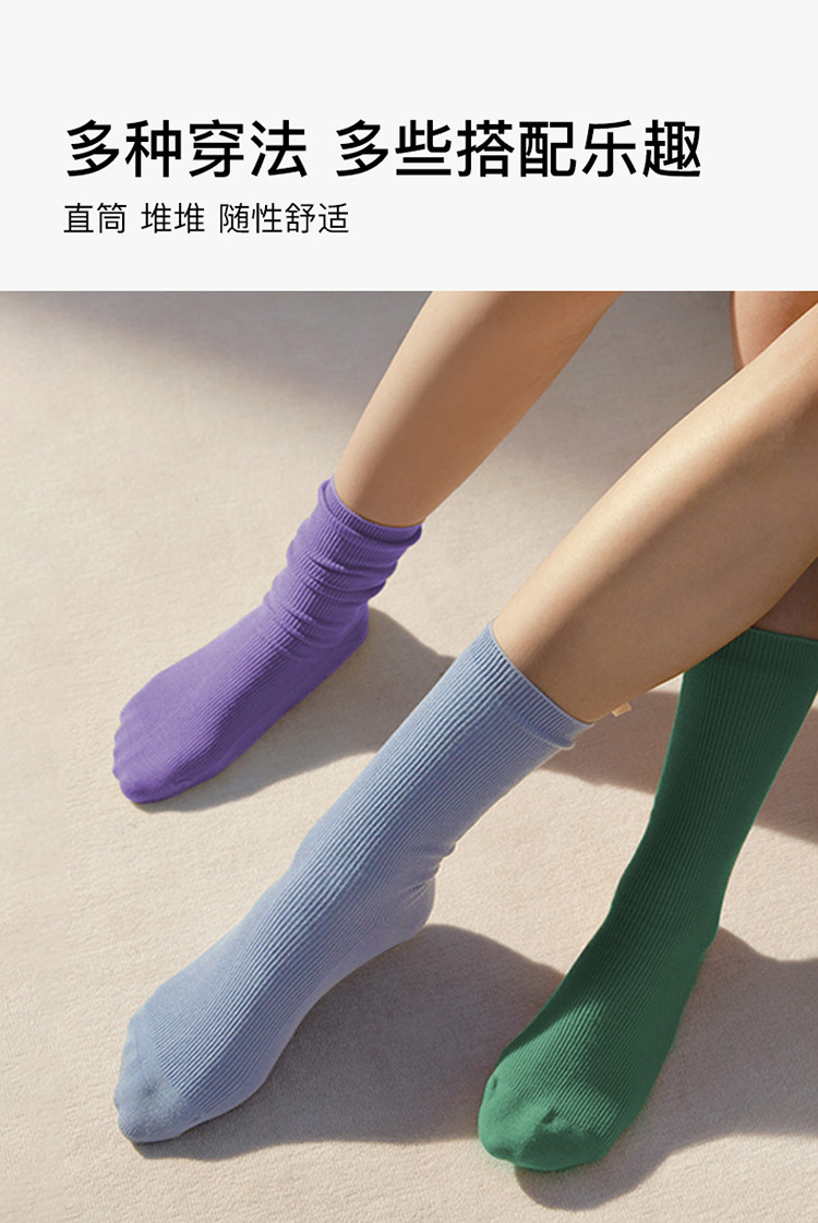 商品名称:【三双装】罗纹高弹莱卡堆堆中筒袜情侣舒适百搭纯色棉袜女 378240