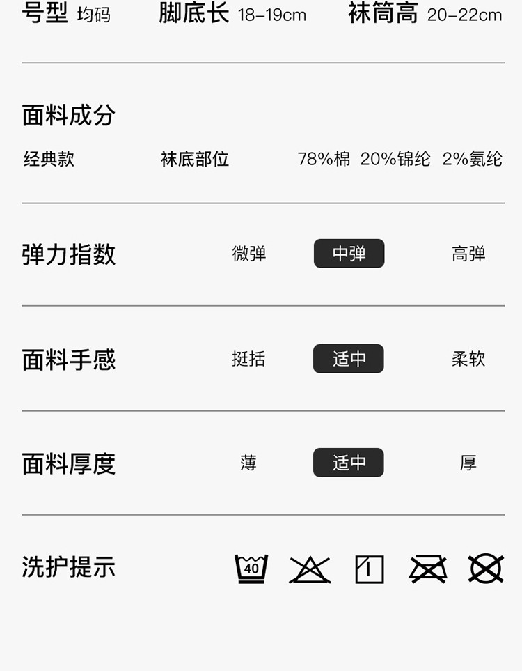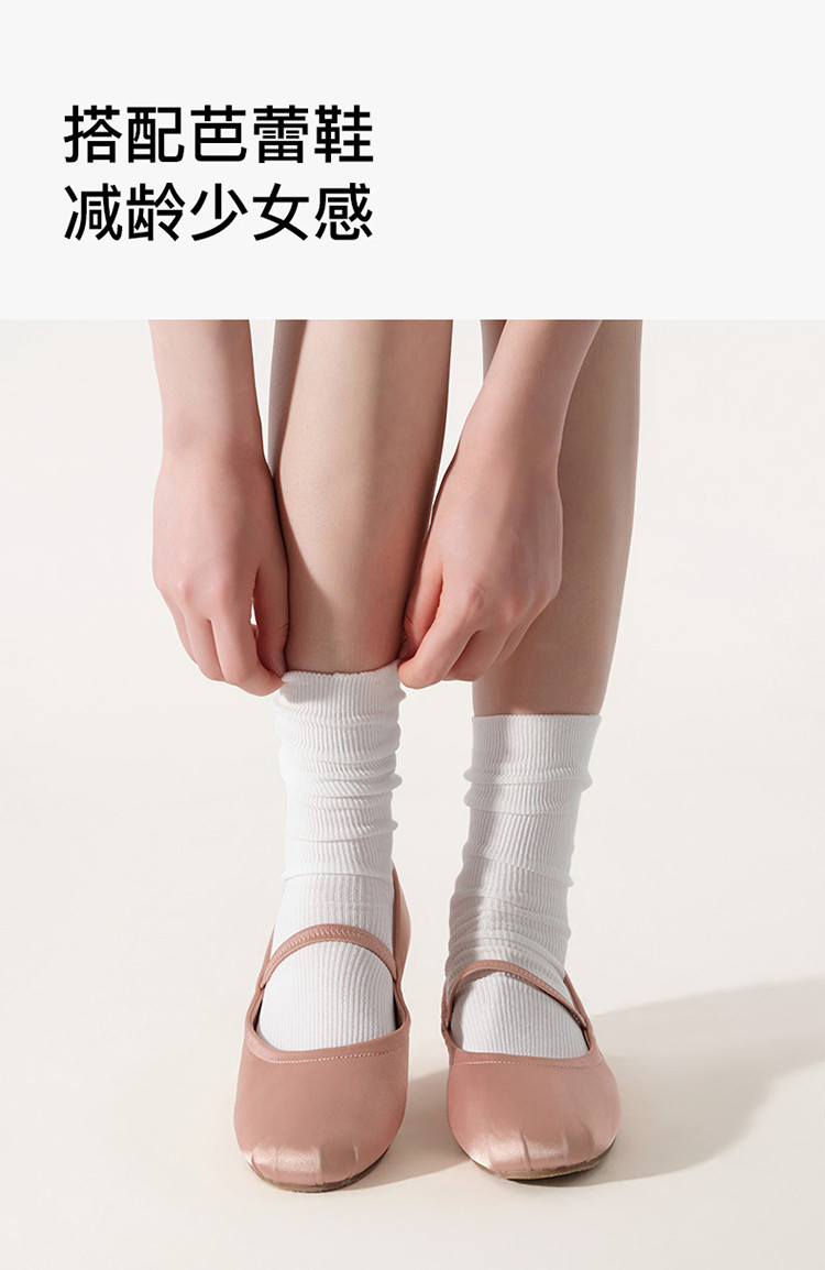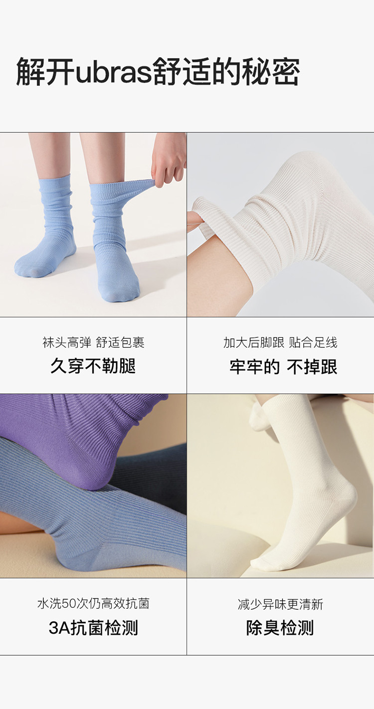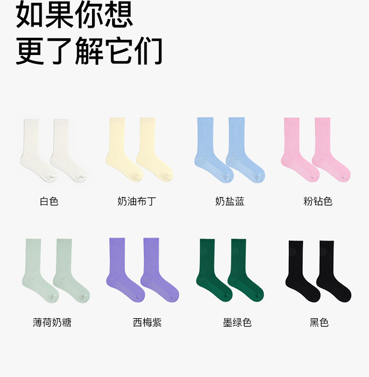 商品名称:【三双装】罗纹高弹莱卡堆堆中筒袜情侣舒适百搭纯色棉袜女 378240