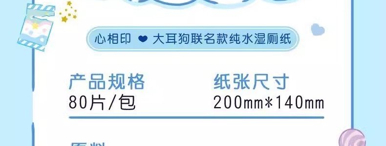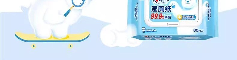 商品名称:心相印 湿厕纸 温和杀菌洁厕湿纸巾 80片*5包 新老包装随机发
