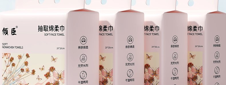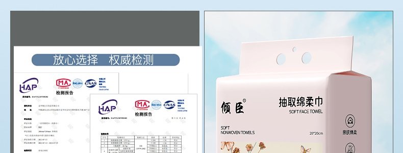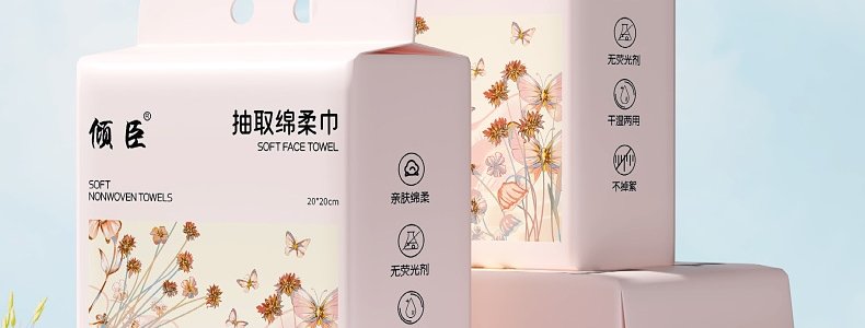 商品名称:倾臣 悬挂抽取式绵柔洗脸巾500克 20cm*20cm