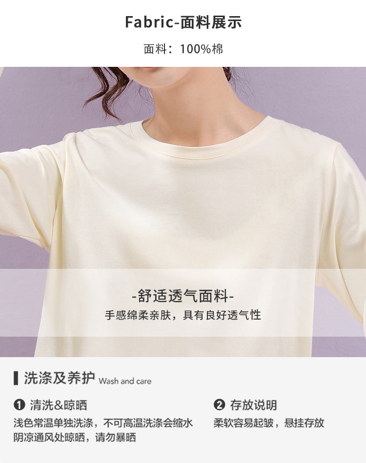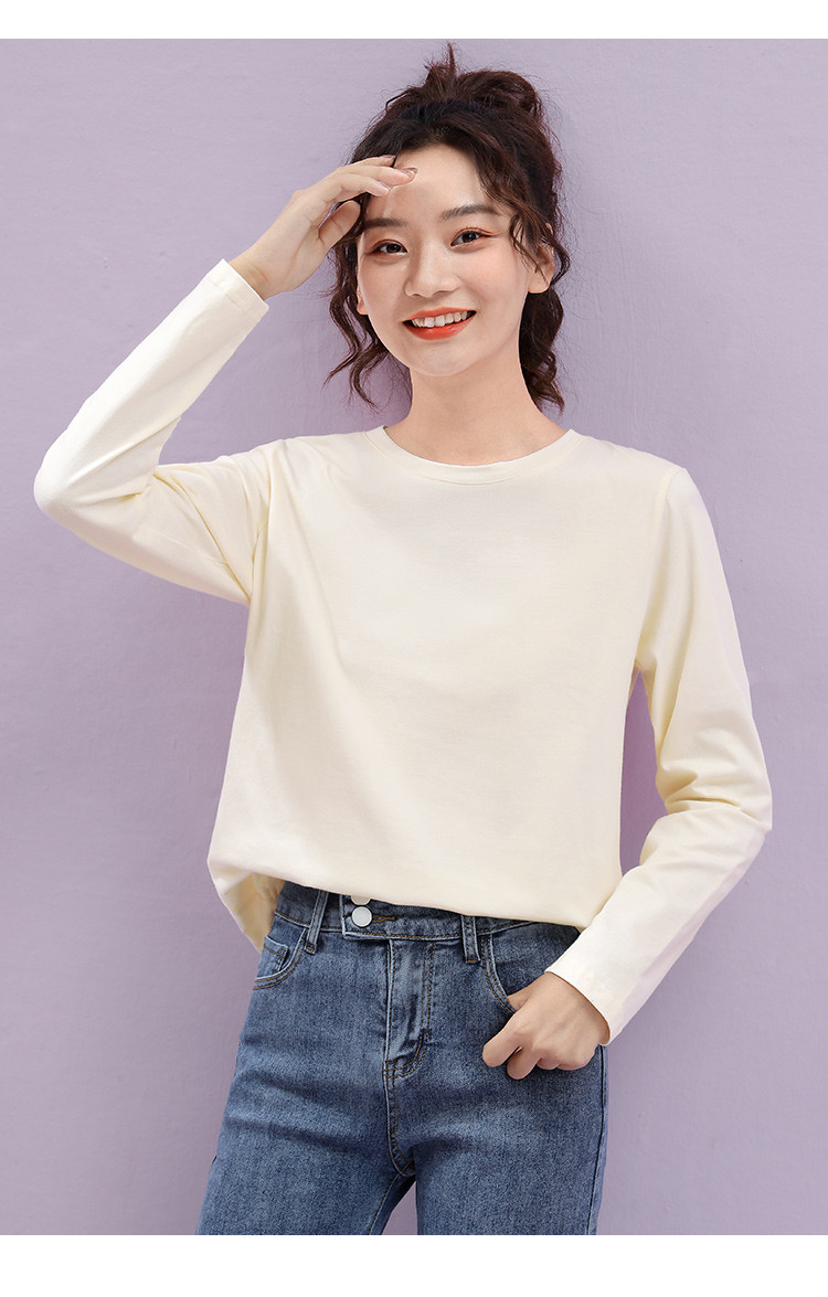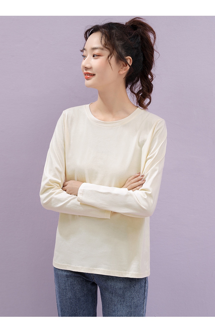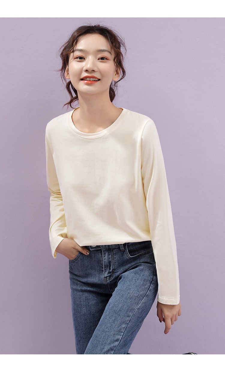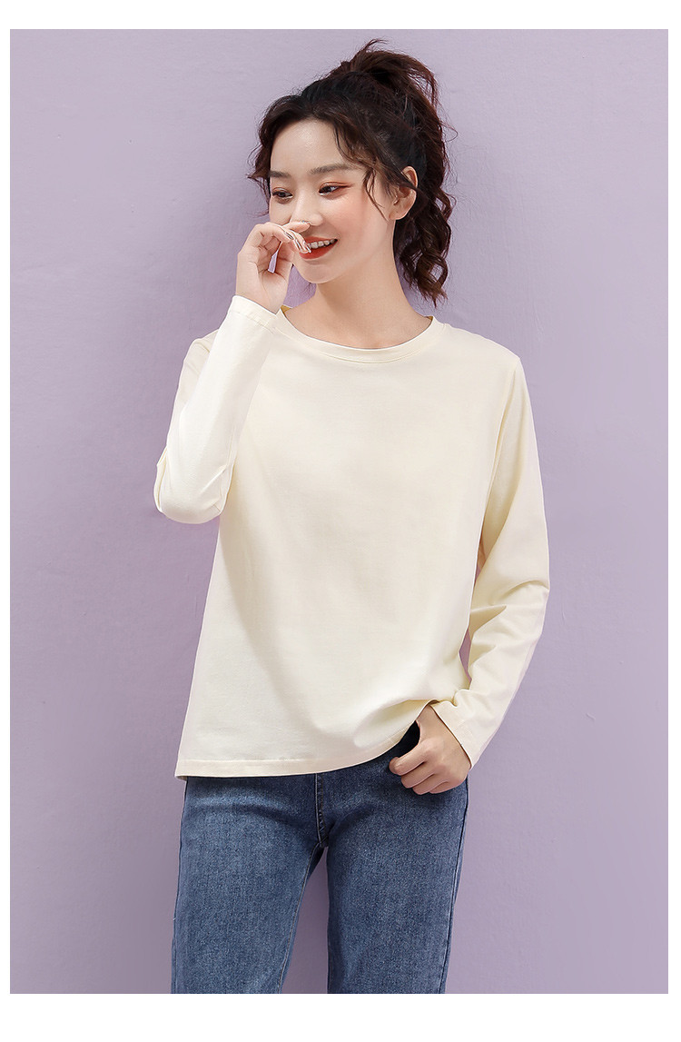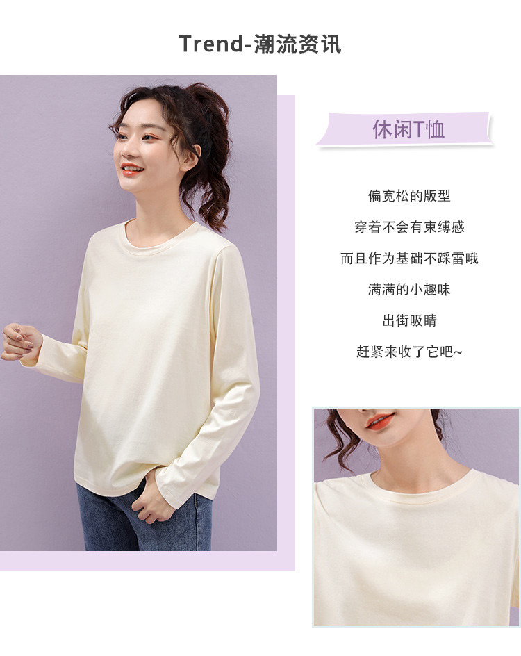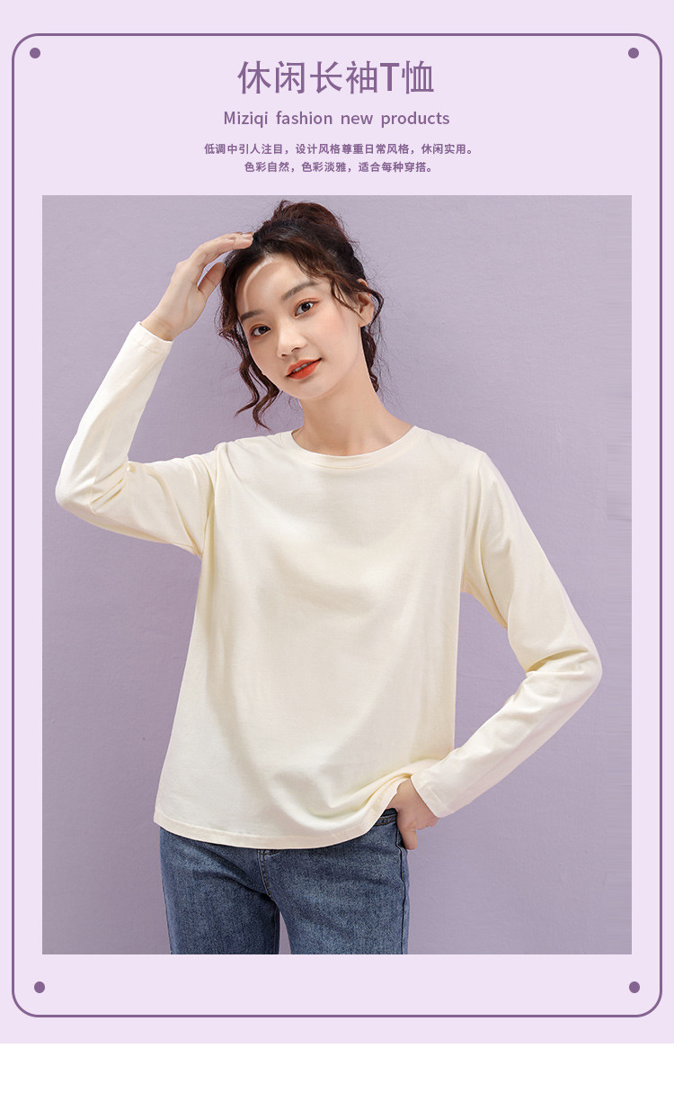 商品名称:米子旗春秋季款女式长袖上衣百搭纯色高级感女款圆领T恤 172314