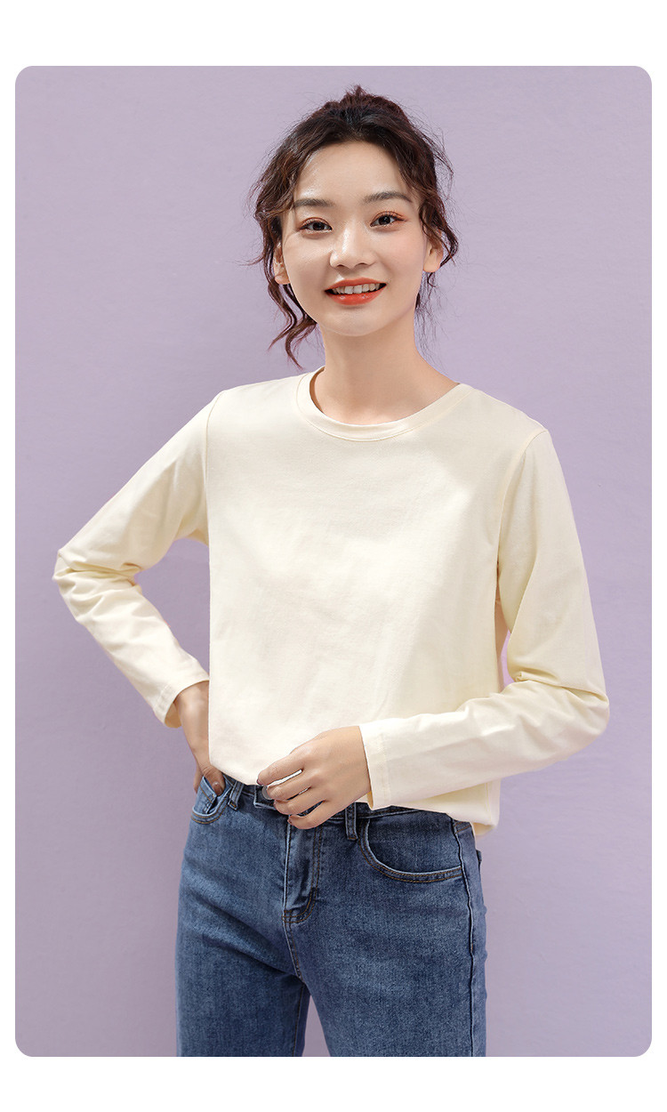 米子旗春秋季款女式长袖上衣百搭纯色高级感女款圆领T恤 172314