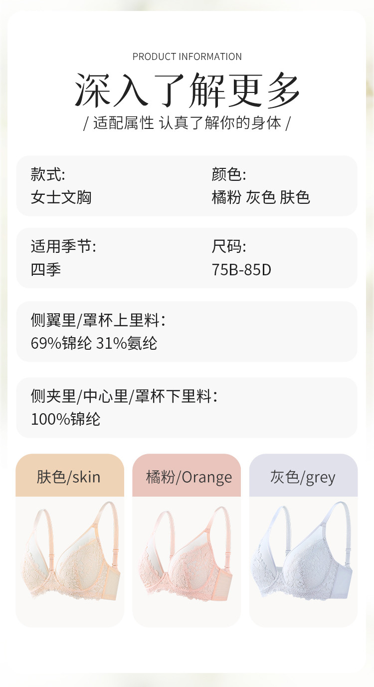 商品名称:【精致透气 花瓣杯】清爽性感花卉蕾丝舒适承托薄杯内衣文胸女士 576715