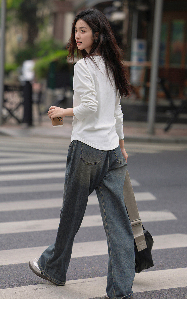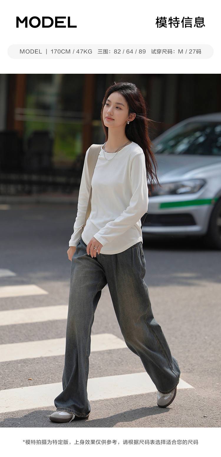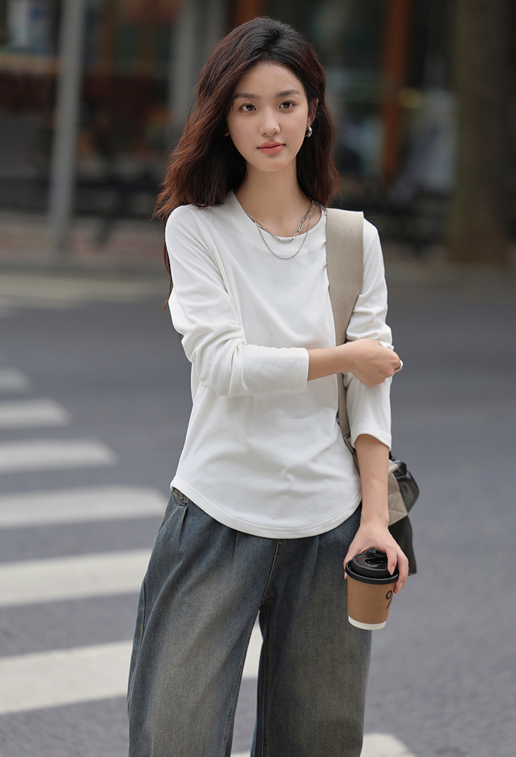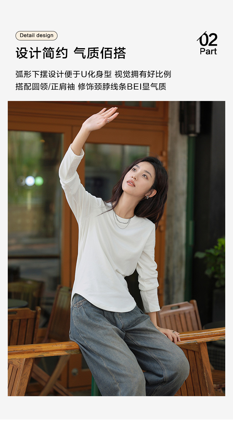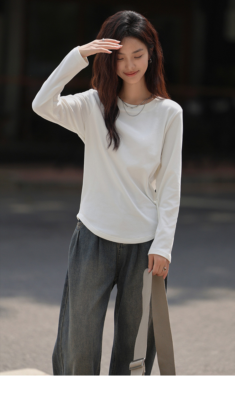 商品名称:【纯色打底长袖】秋冬款圆领下摆弧形设计基础T恤女 931266