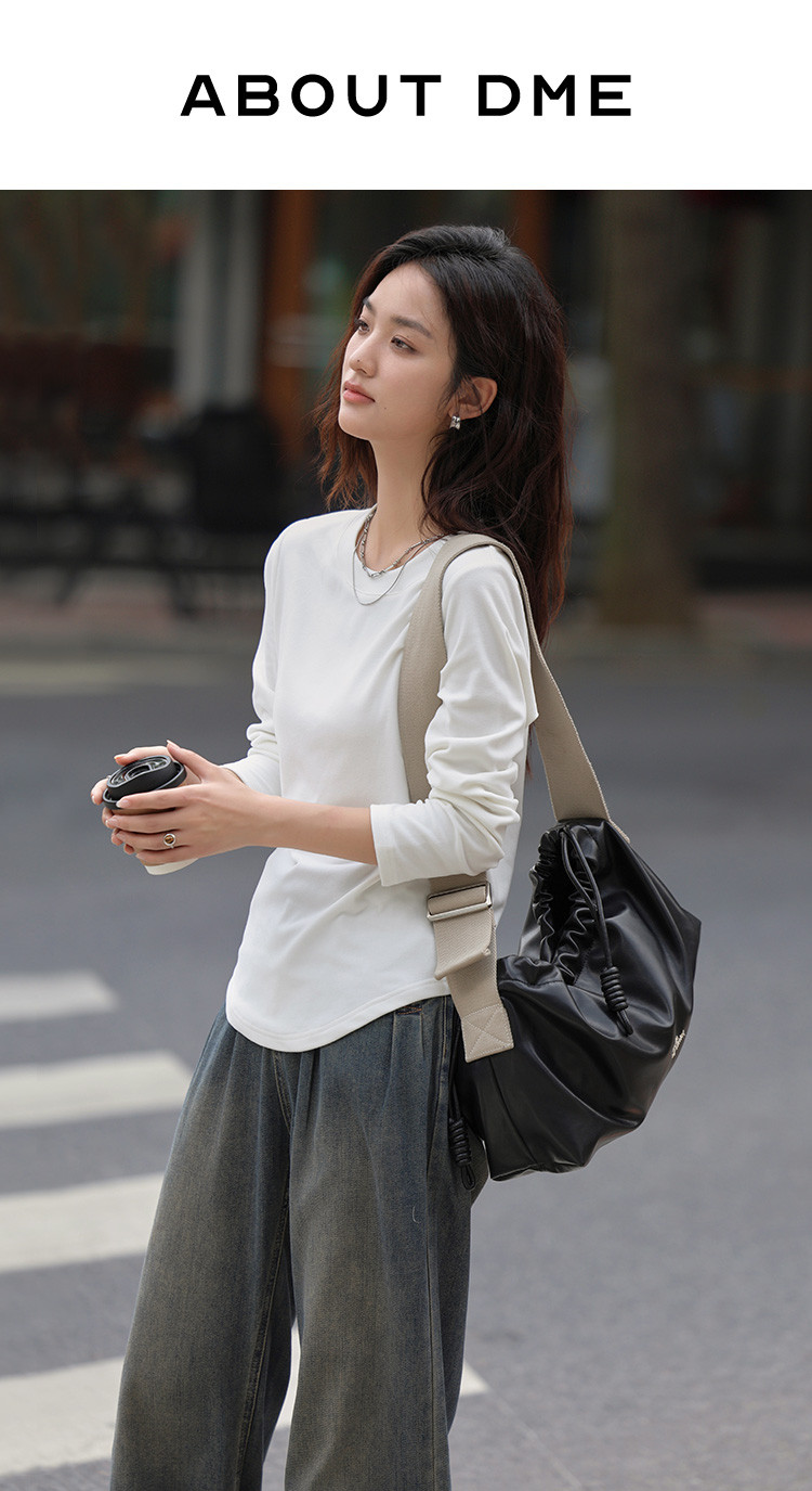 【纯色打底长袖】秋冬款圆领下摆弧形设计基础T恤女 931266