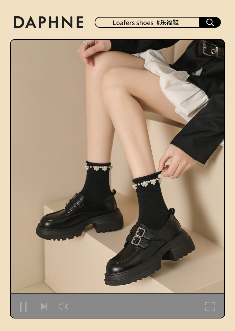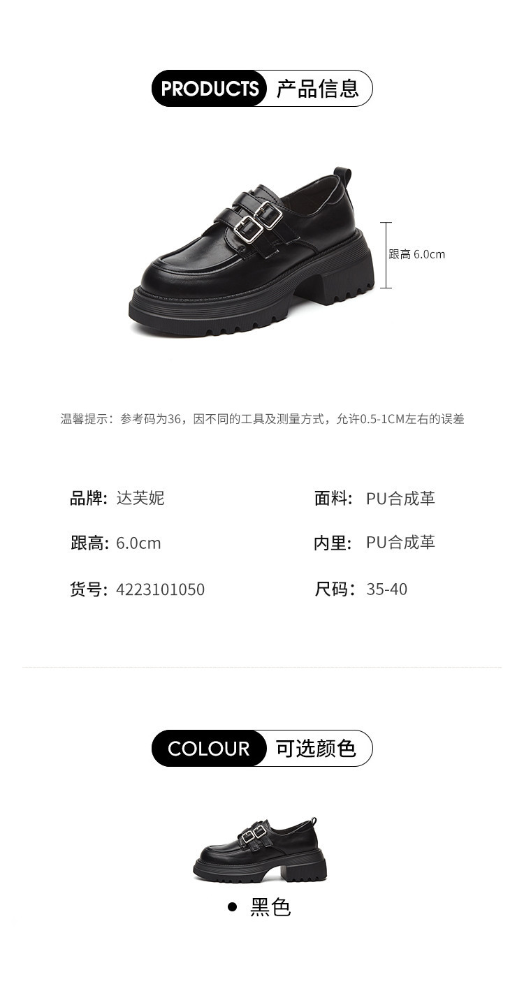 商品名称:乐福鞋女鞋子春季新款2025年厚底增高单鞋通勤鞋子英伦风女鞋 606039