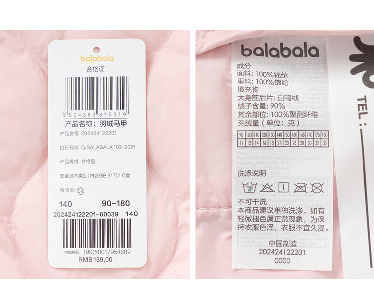 商品名称:亲子三防面料儿童马甲男童女童羽绒背心冬季童装轻薄上衣宝宝小童 665733